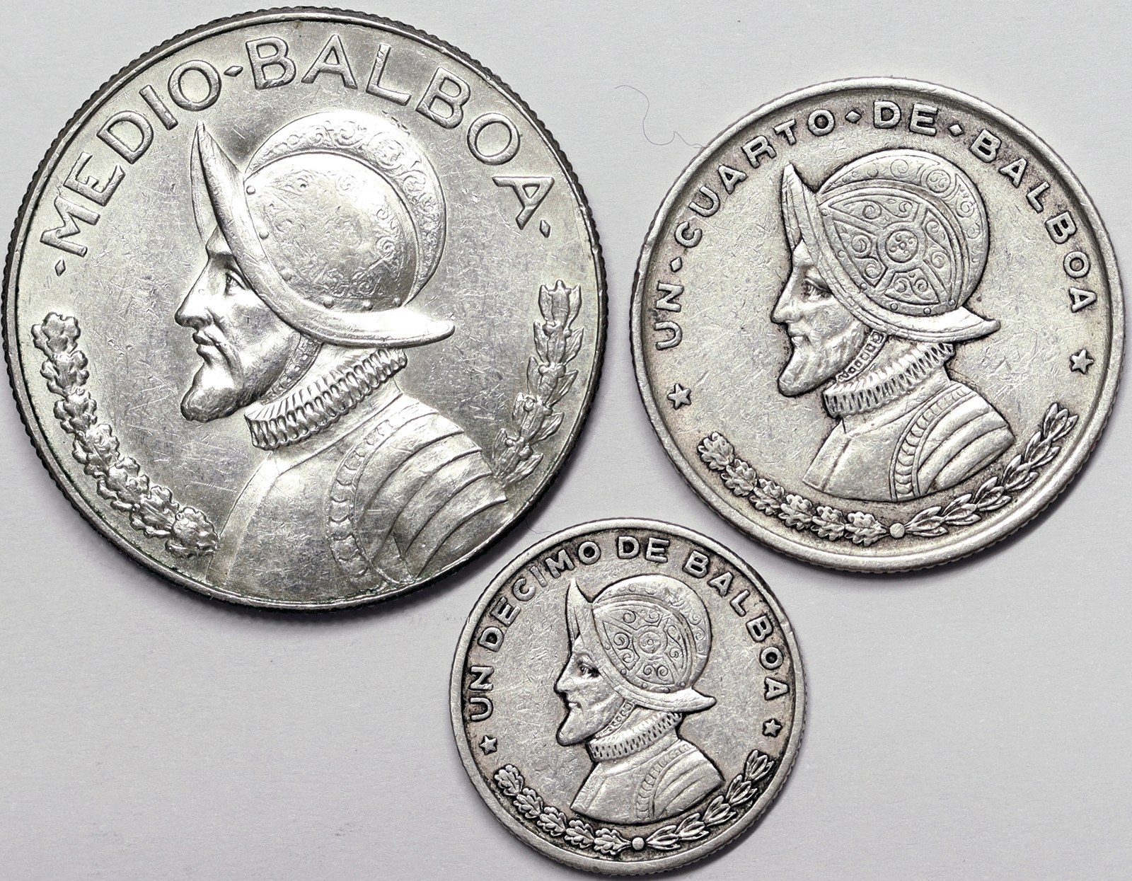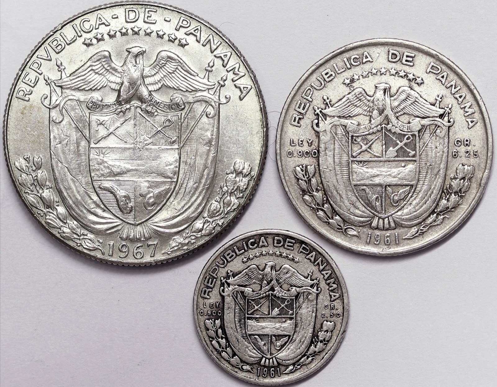 1/2 Balboa 1967, 1/4 Balboa 1961, 1/10 Balboa 1961. Ag.900
