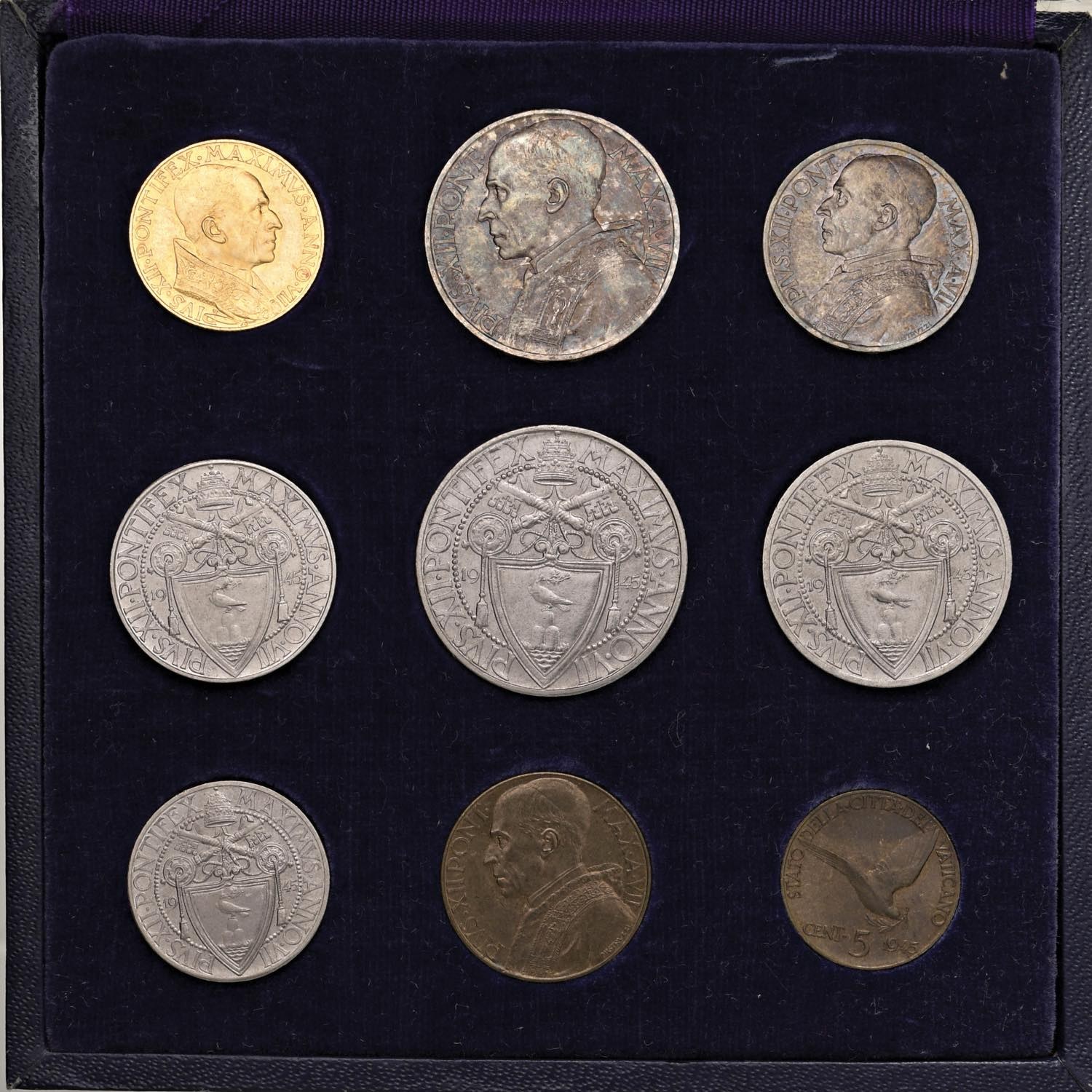 Pio XII (1939-1958) Divisionale 1945 A. VII - Nomisma 961 AU, AG, NI, BA RRR Lotto di nove valori in astuccio