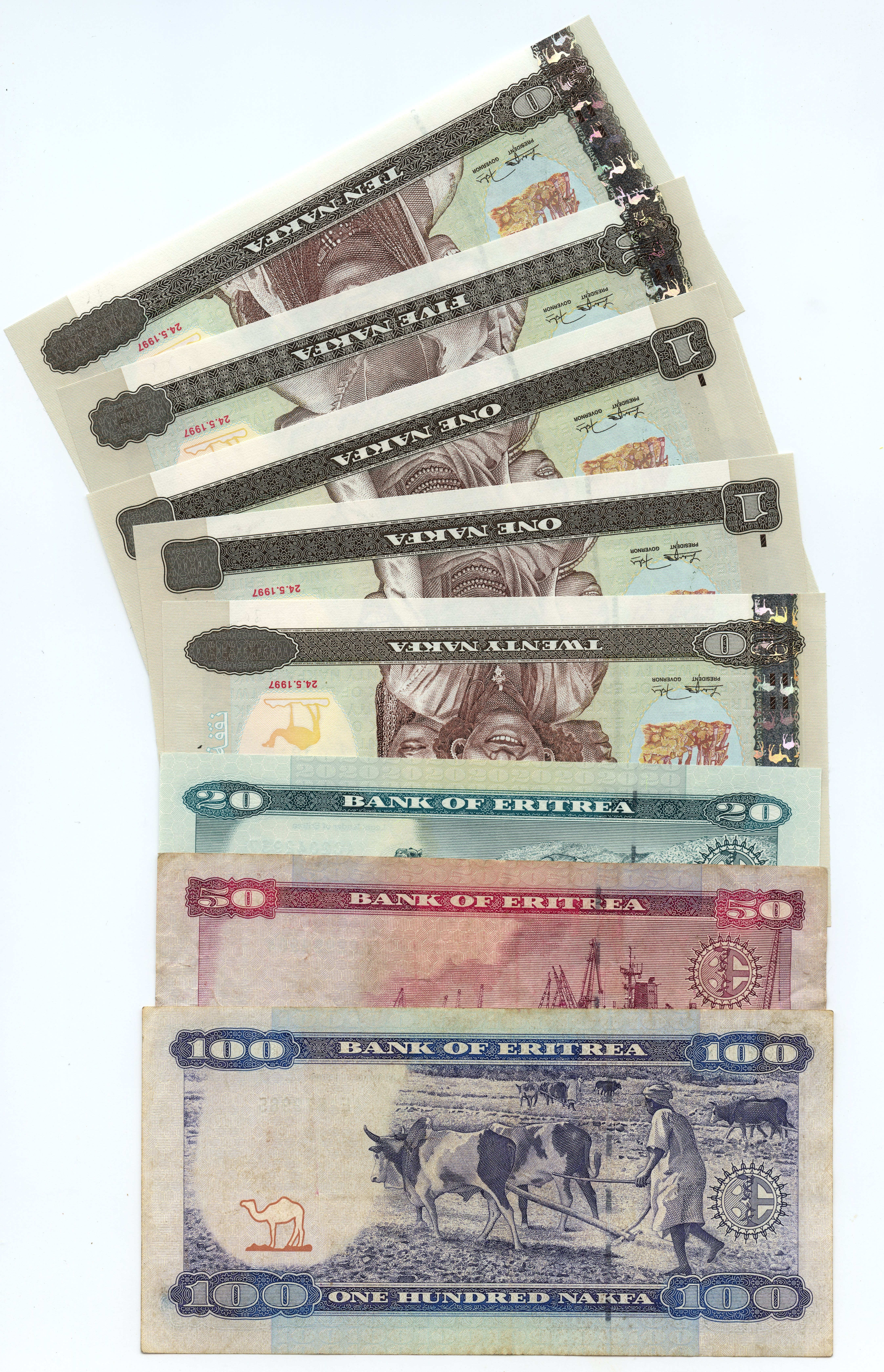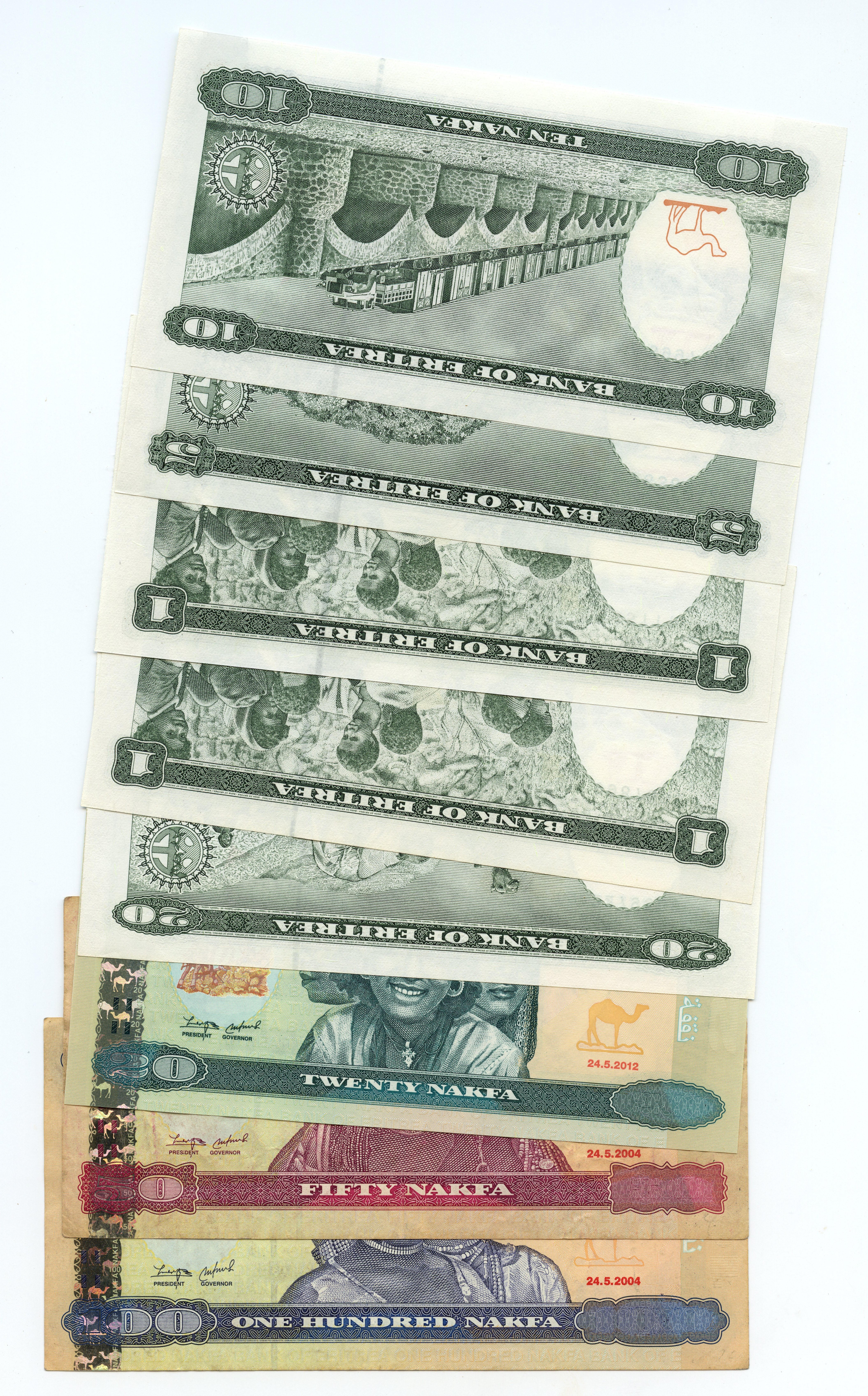 Afryka - Stan Erytrea (1997 - 2012), zestaw 8 sztuk banknotów