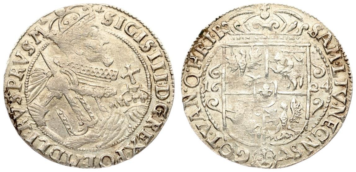Poland 1 Ort 1624. Sigismund III Vasa (1587-1632) - Crown coins; ort 1624. Bydgoszcz; on the obverse end of the inscription PRVS M. Silver. Shatalin BD24-1