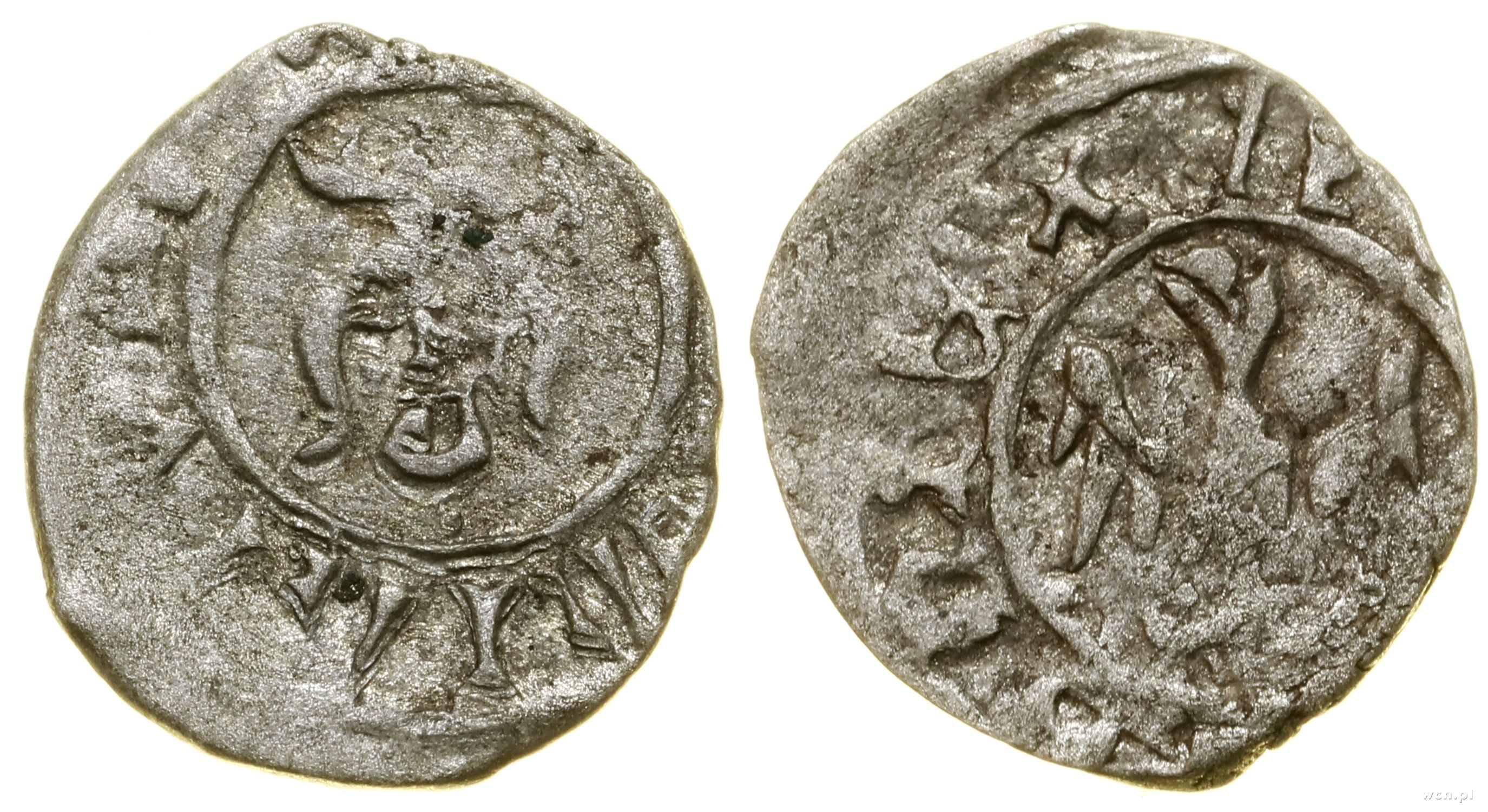 Aw: Głowa króla w koronie z długimi włosami, na wprost, legenda, Rw: Orzeł heraldyczny na wprost z głową w prawo, legenda