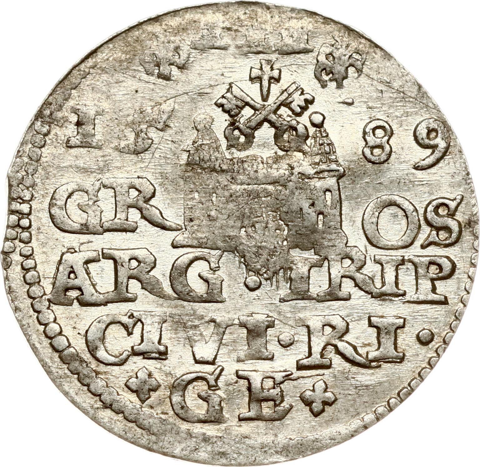 Poland. Zygmunt III Waza (1587–1632). Trojak 1589, Riga. Silver 2.36 g. Kop. 8182 (R4). Small scratches.