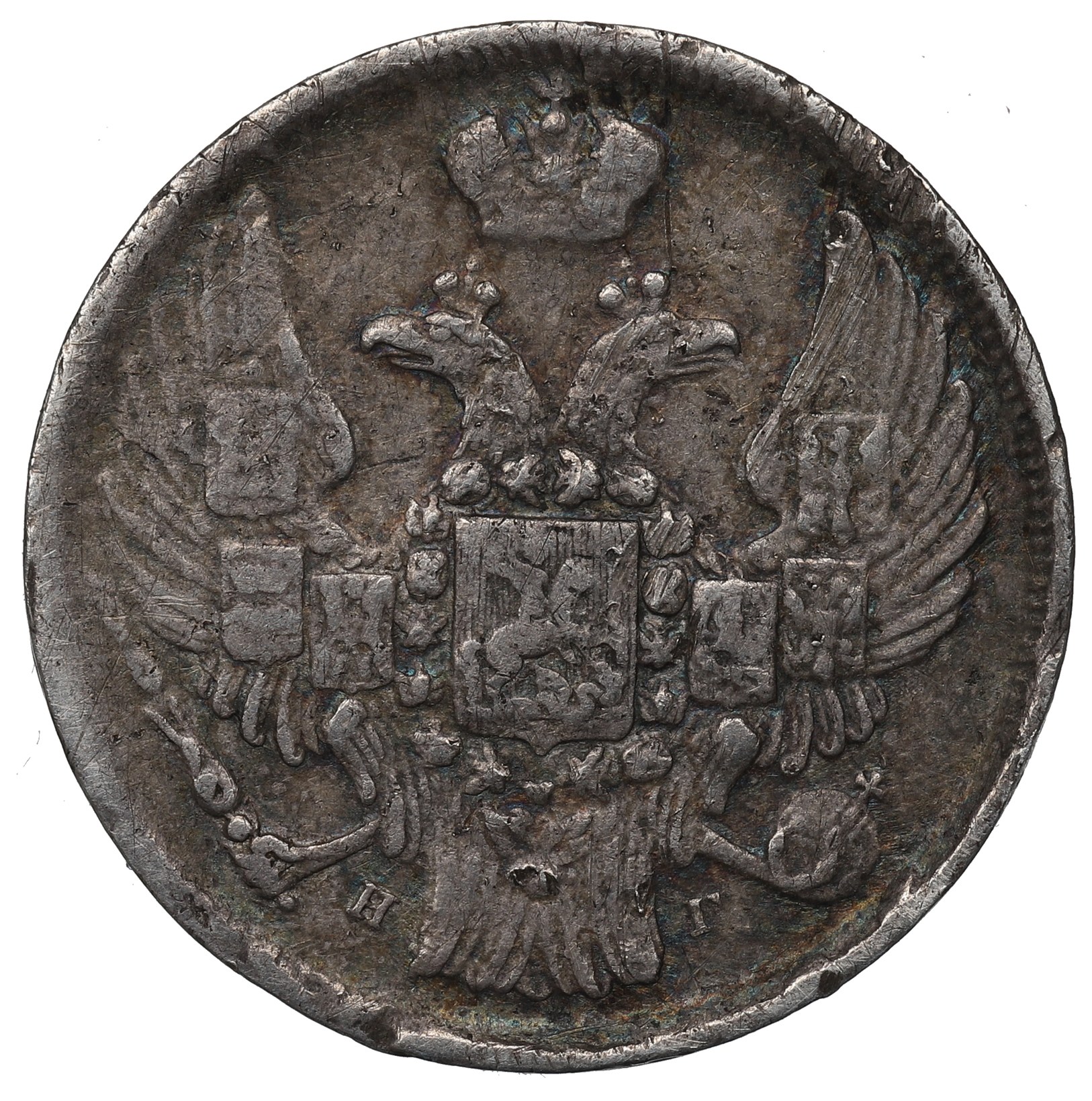 Obiegowy egzemplarz w ciemnej patynie.