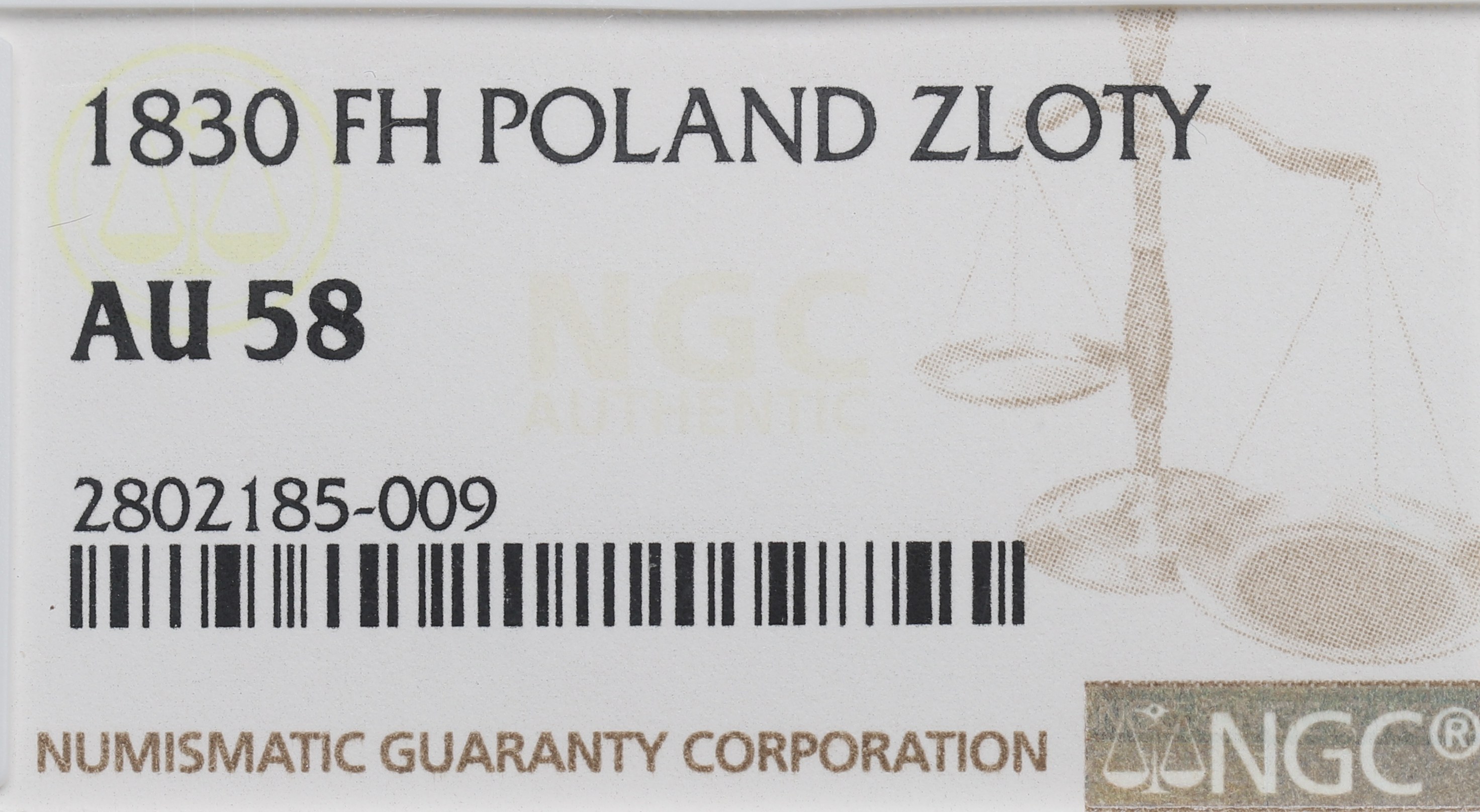 Awers: w wieńcu dębowym napis: 1/ZŁO•POL•/1830, pod wieńcem KG, w otoku legenda: