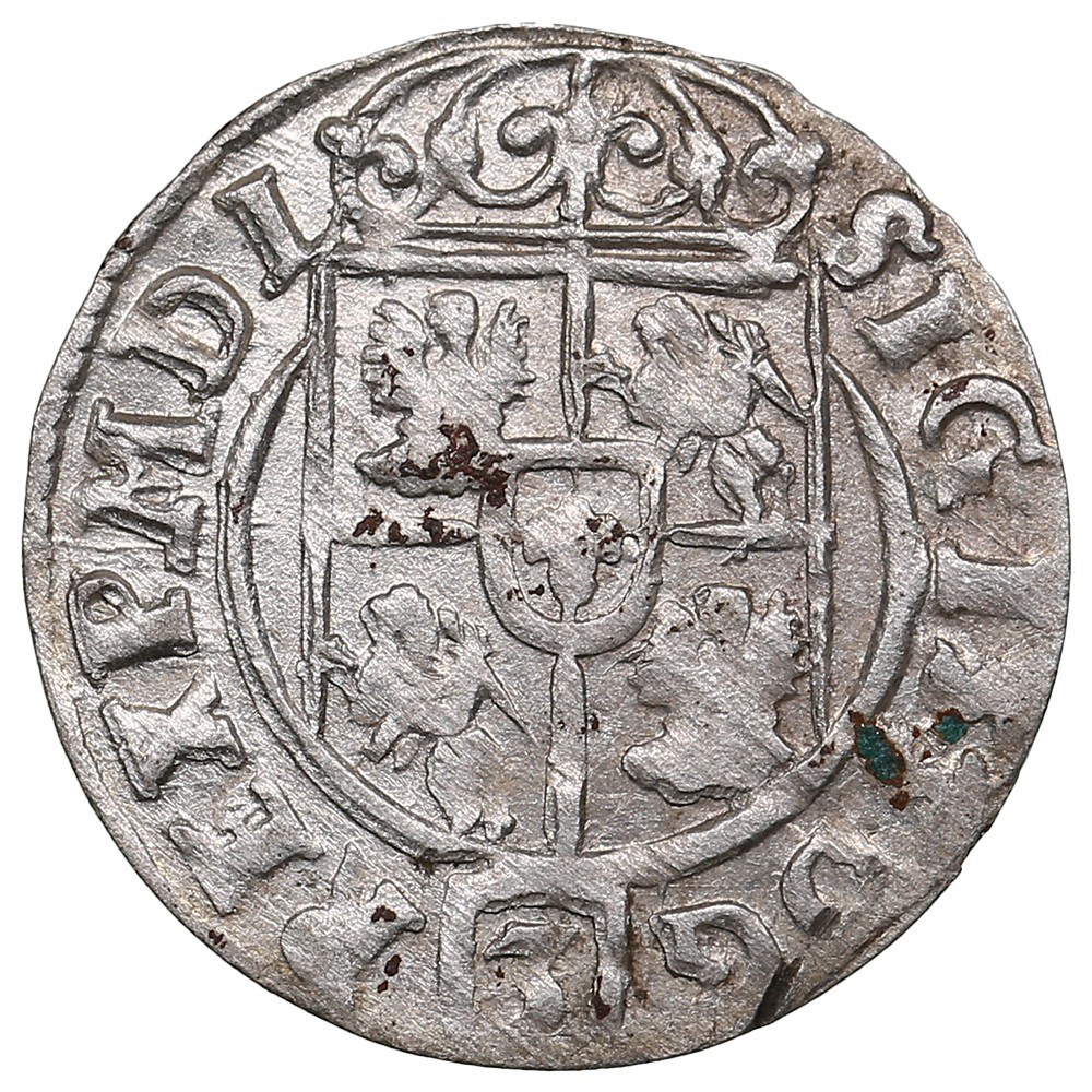 Obv.: Crowned shield bearing the quartered arms of Poland and Lithuania, Vasa arms at center, value 3 at bottom; “SIGIS 3 D G – REX P M D L”.