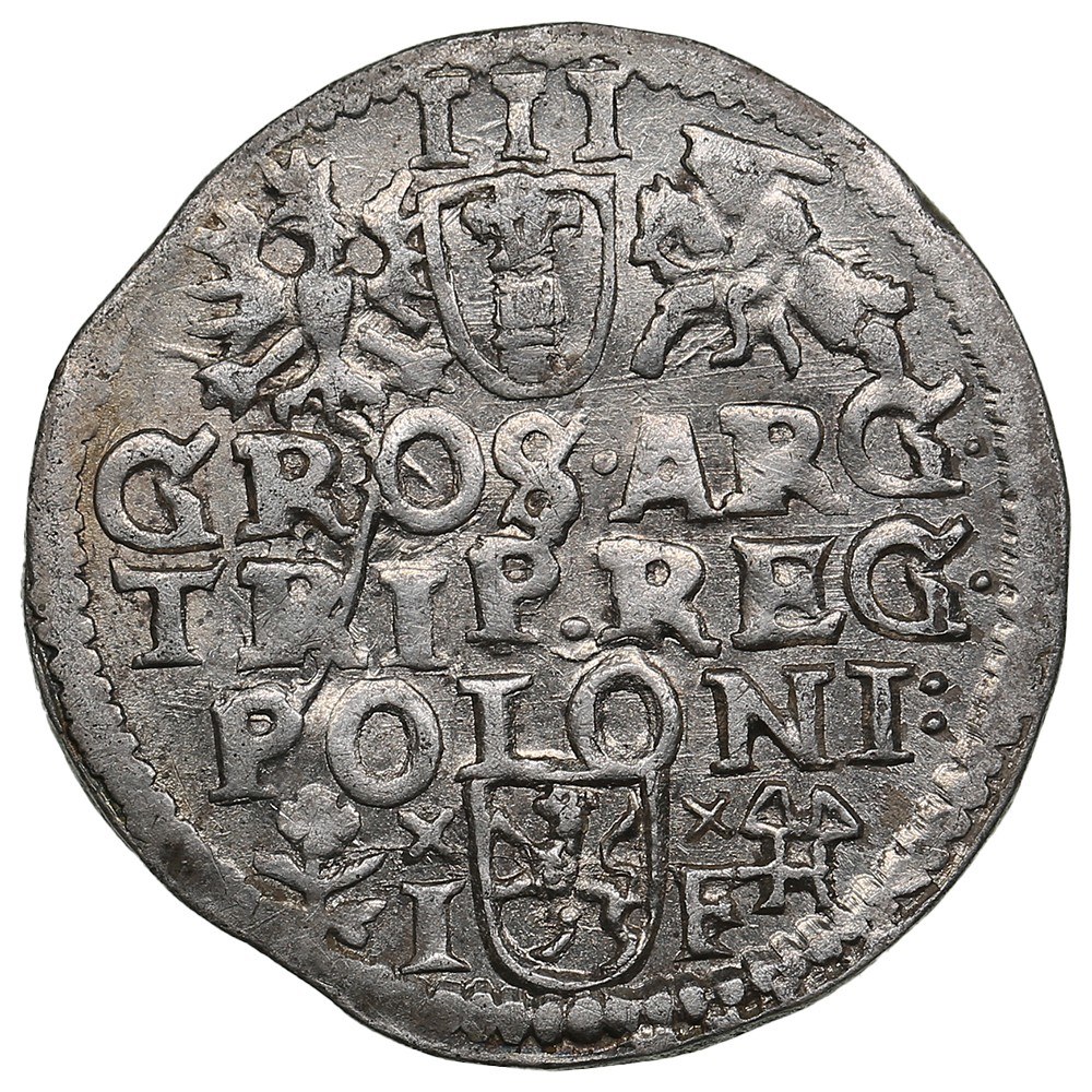 Rev.: Vasa arms between Polish and Lithuanian arms; above, III; legend in three lines “GROS·ARG· TRIP·REG· ·POLONI:”, below, arms of crown treasurer Jan Firley with initials I-F and two mintmaster’s signs.