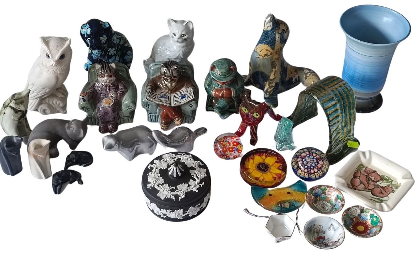Duży zestaw figurek i obiektów porcelanowych i szklanych