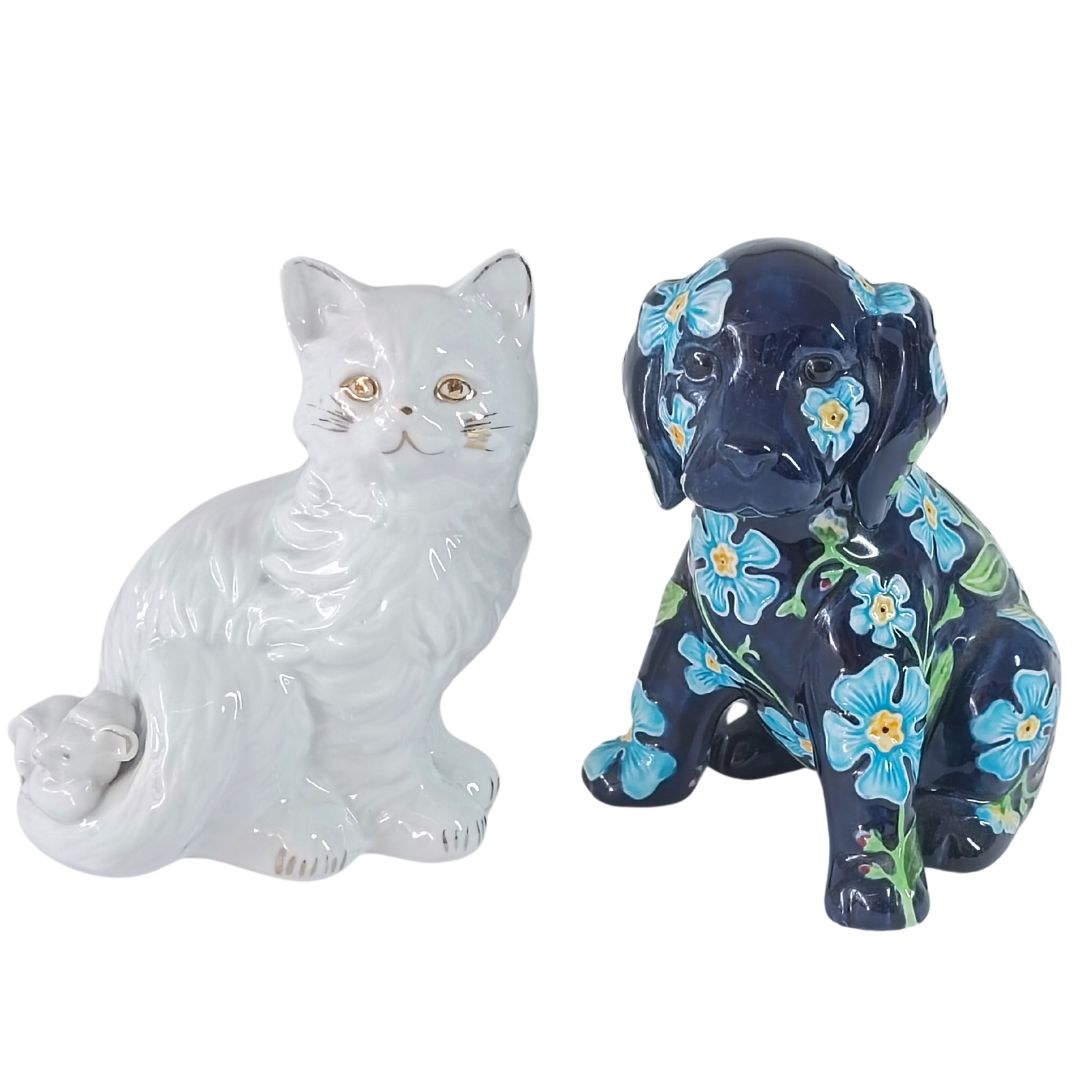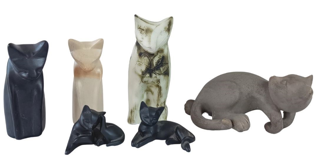 Zestaw zawierający m.in. komplet trzech ceramicznych kotów kolekcjonerskich, Quail Ceramics, Anglia.