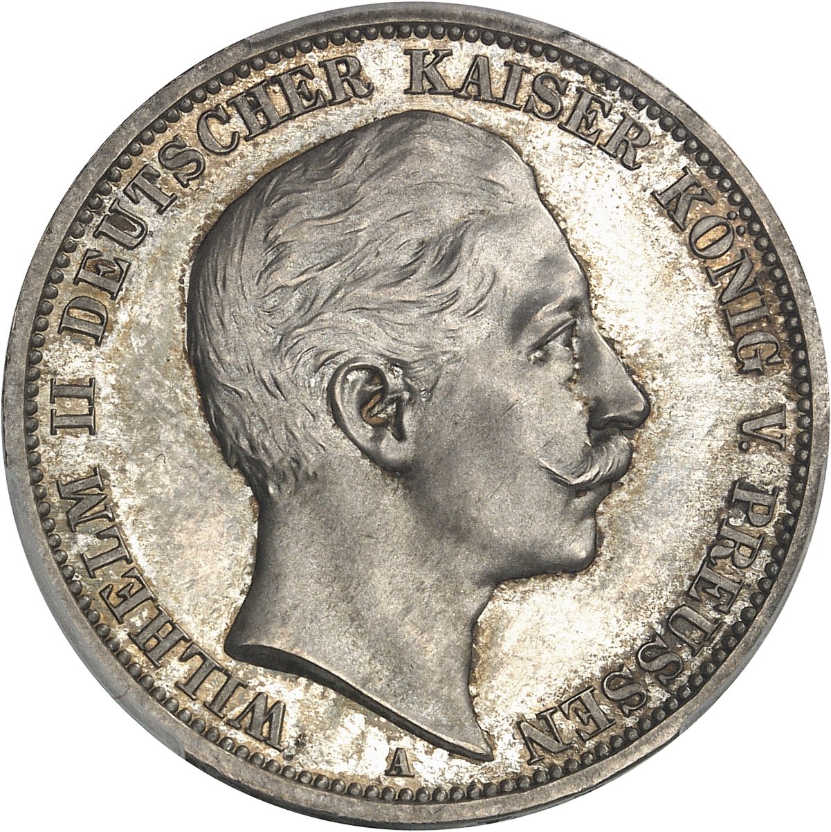 Prusse, Guillaume II (1888-1918). Essai de 3 (drei) mark, Frappe spéciale (SP) 1905, A, Berlin. PCGS SP67 (51871400).