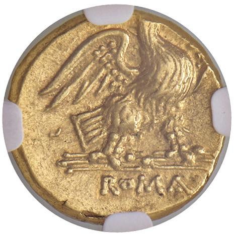 MONETE ROMANE REPUBBLICANE Anonime - 60 Assi (211-208 a.C.) Testa elmata di Marte a d. - R/ Aquila stante a d. - Cr. 44/2 AU (g 3,36) RR Ex MDC, 2022, lotto 105, con una citazione precedente dalla vendita Hirsch 21 settembre 1993, lotto 730.