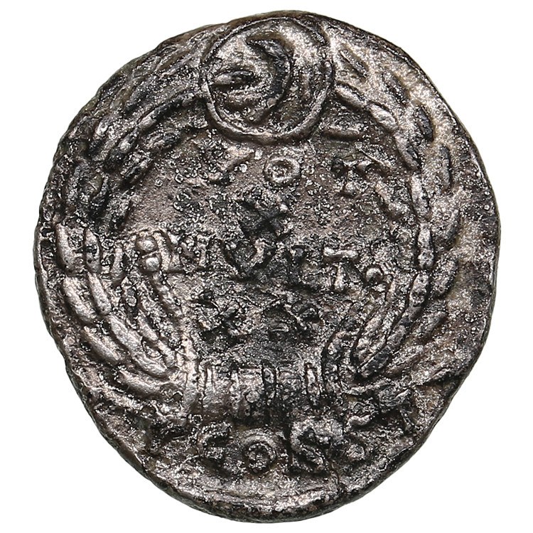 1.89g. 16mm. AU/XF. Obv.: Pearl-diademed, draped bust to right; “DN FL CL IVLI-ANVS P F AVG”. Rev.: “VOT X MVLT XX” in four lines within laurel wreath with medallion containing an eagle; PCONST in exergue. RIC VIII 309; RSC 148.