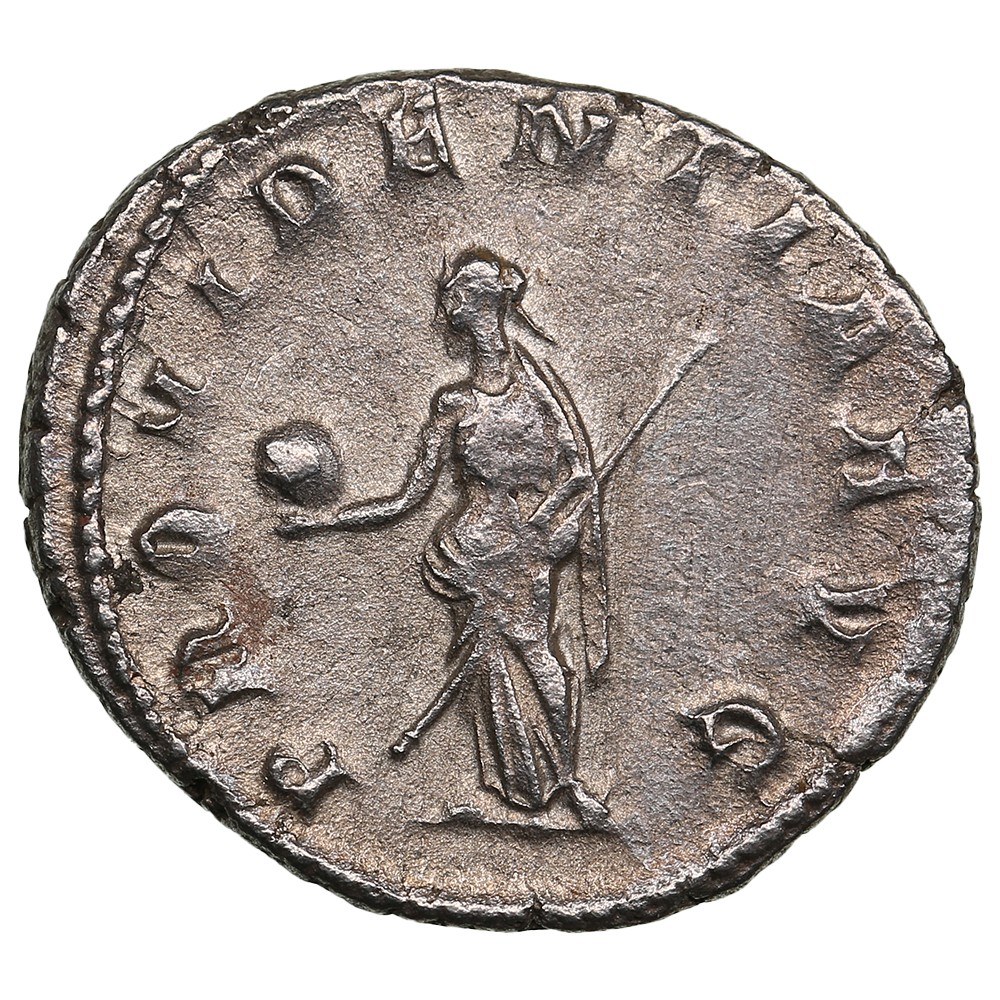 Rev.: Providentia standing facing, head left; holding globe and transverse scepter; “PROVIDENTIA AVG”.
