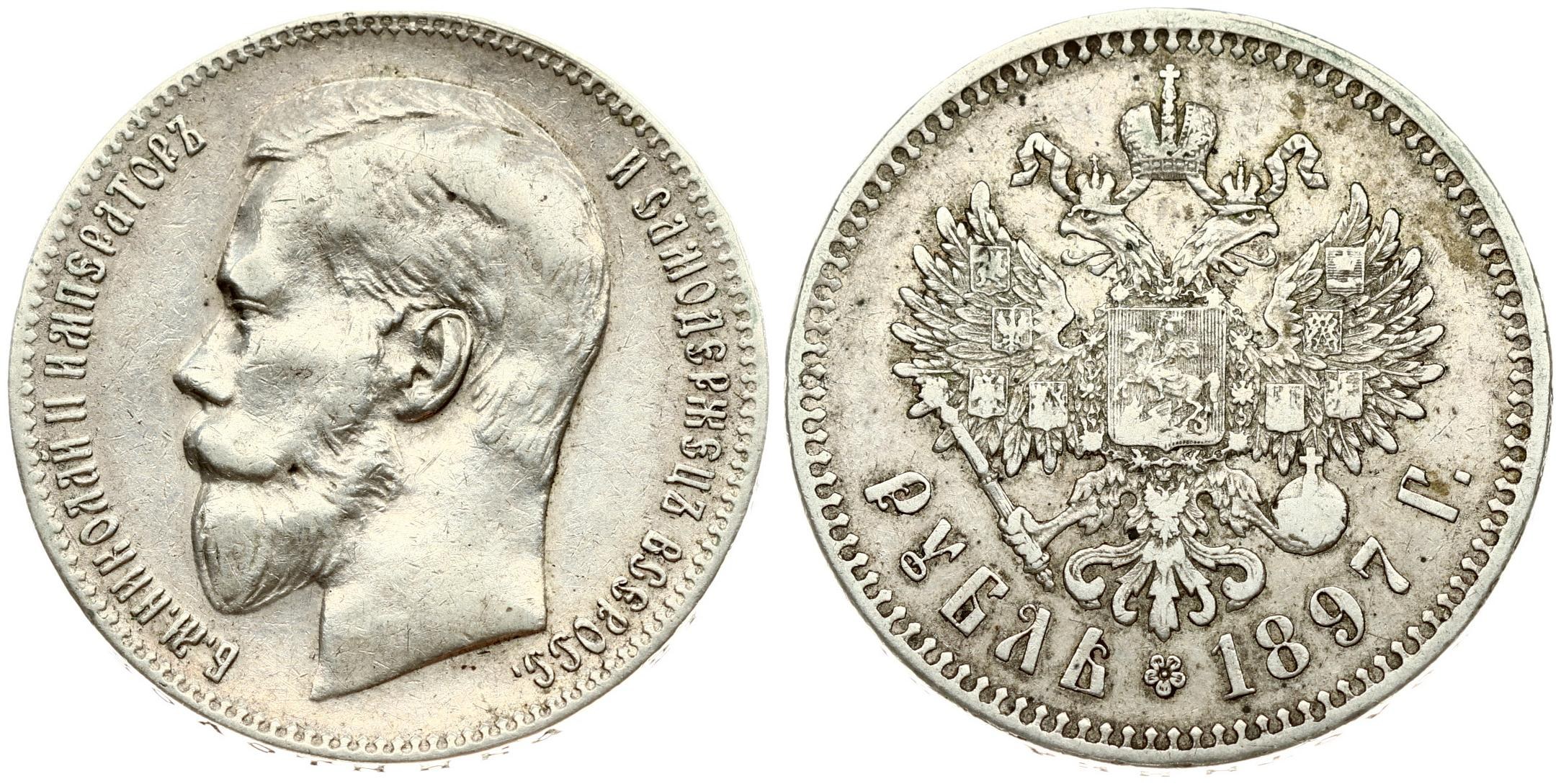 Russia 1 Rouble 1897 (**) Brussels. Nicholas II (1894-1917). Averse: Head left. Reverse: Crowned double...