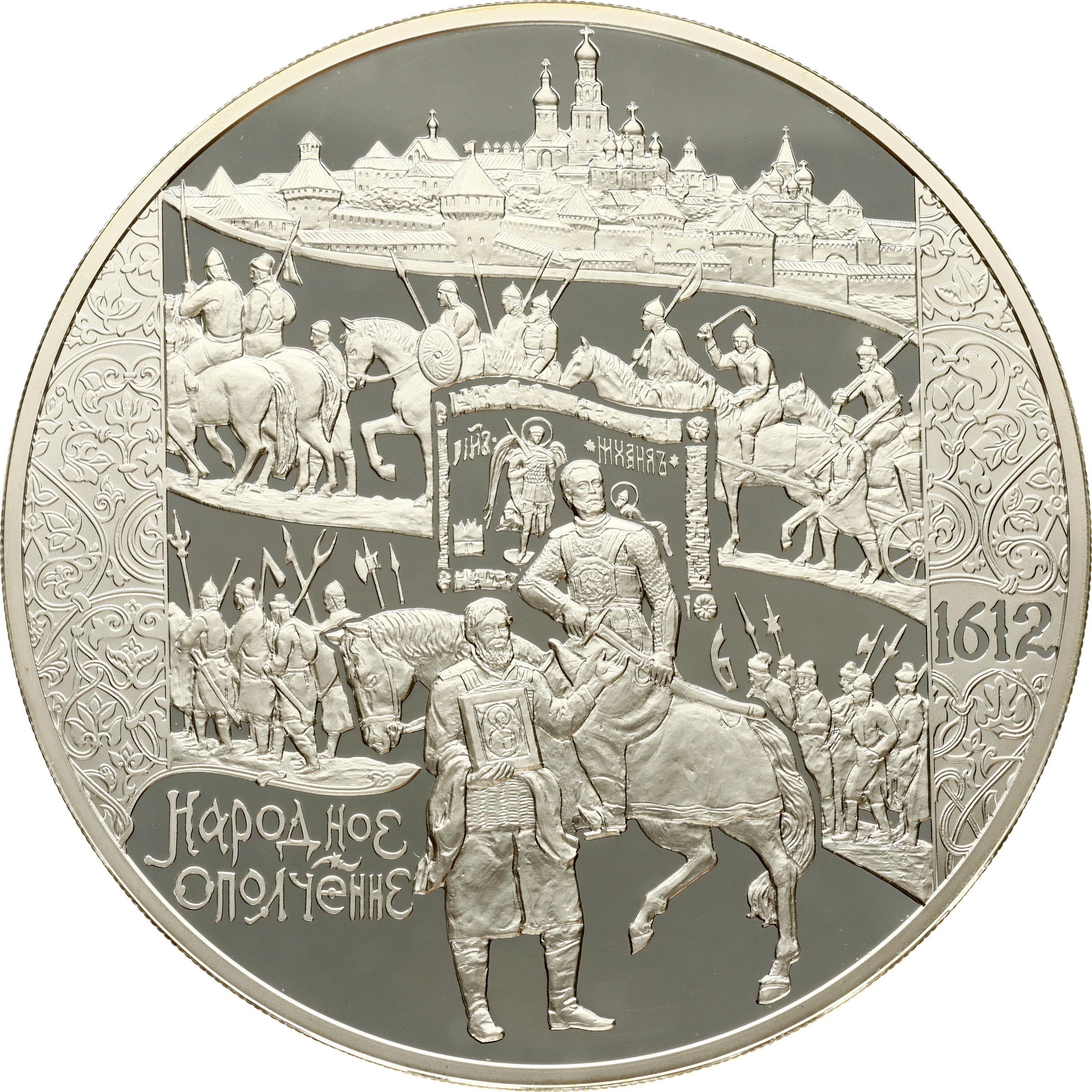 Russia. 100 Roubles 2012 СПМД, The People's Voluntary Corps. The 400th Anniversary of the People's Voluntary Corps Headed by Kozma Minin and Dmitry Pozharsky. Silver .925, 1083.74 g. Mintage 500 pcs. Y 1344. In coin capsule with certificate of Authenticity ДН 002504.
