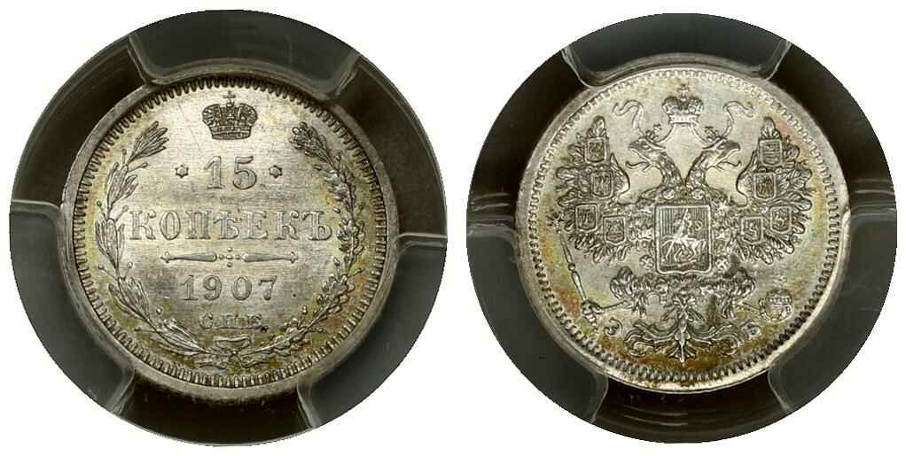 Russia 15 Kopecks 1907 СПБ-ЭБ PCGS MS62