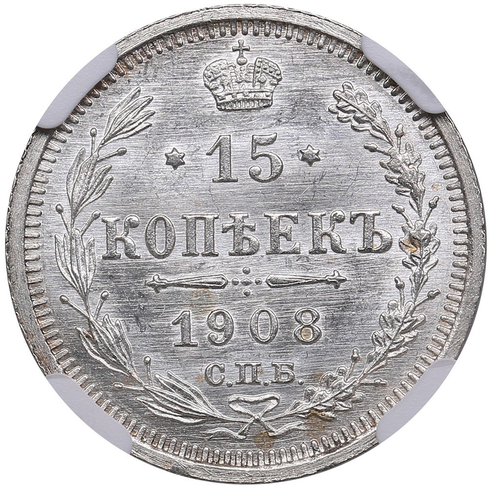 Russia 15 Kopecks 1908 СПБ-ЭБ - Nicholas II (1894-1917) - NGC MS 66