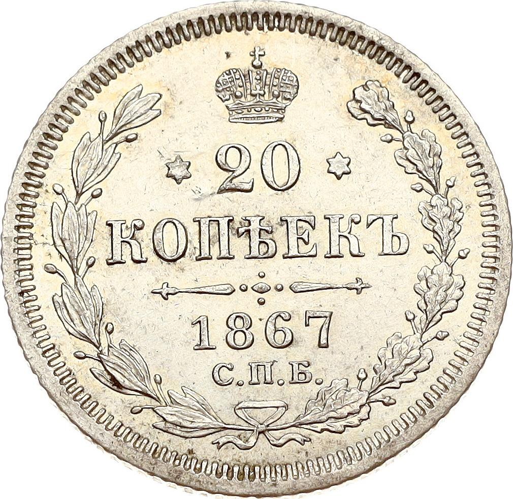 Russia. Alexander II (1855-1881). 20 Kopecks 1867 СПБ-НІ St. Petersburg. Silver 3.50 g. Bitkin 214.