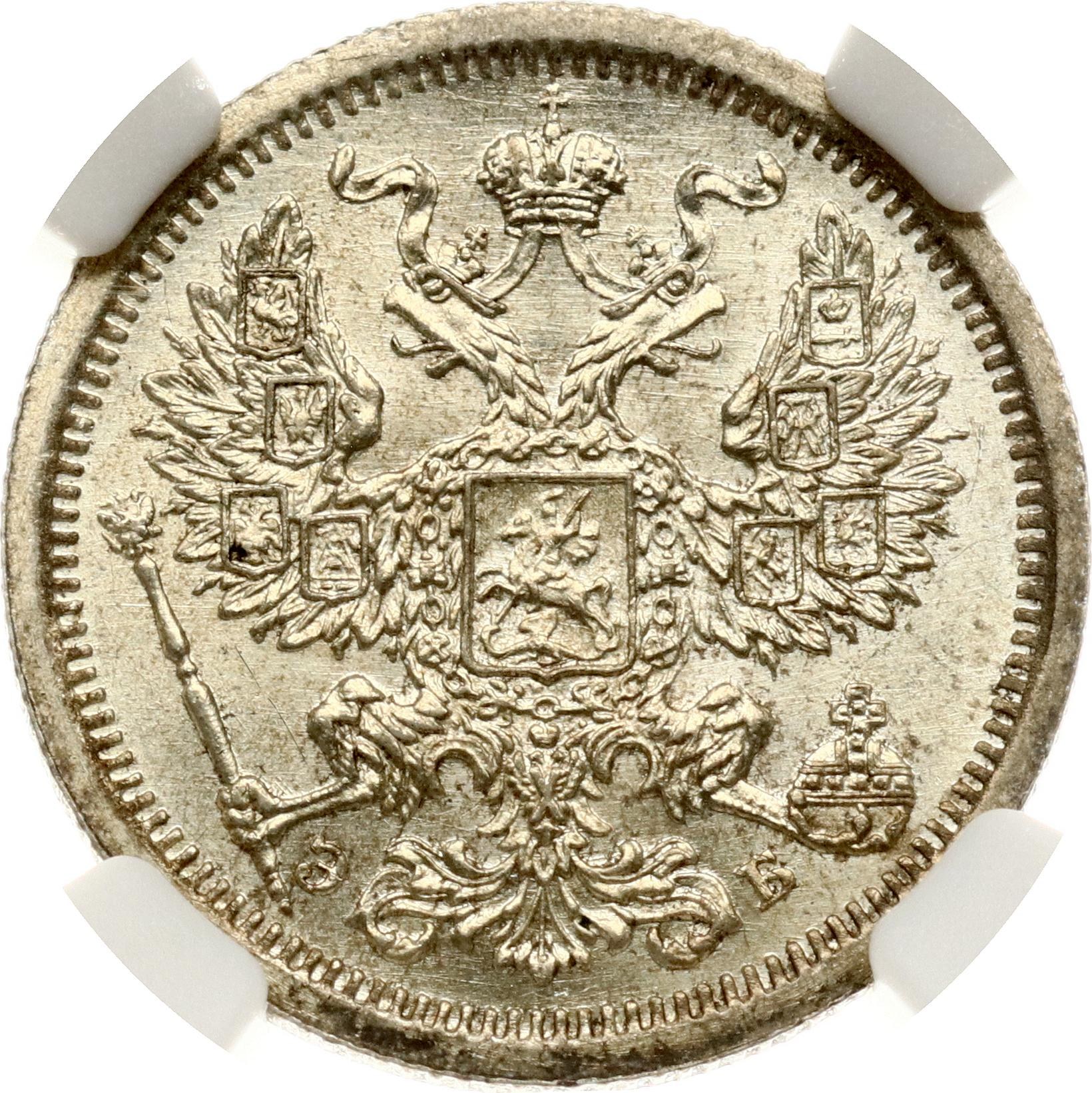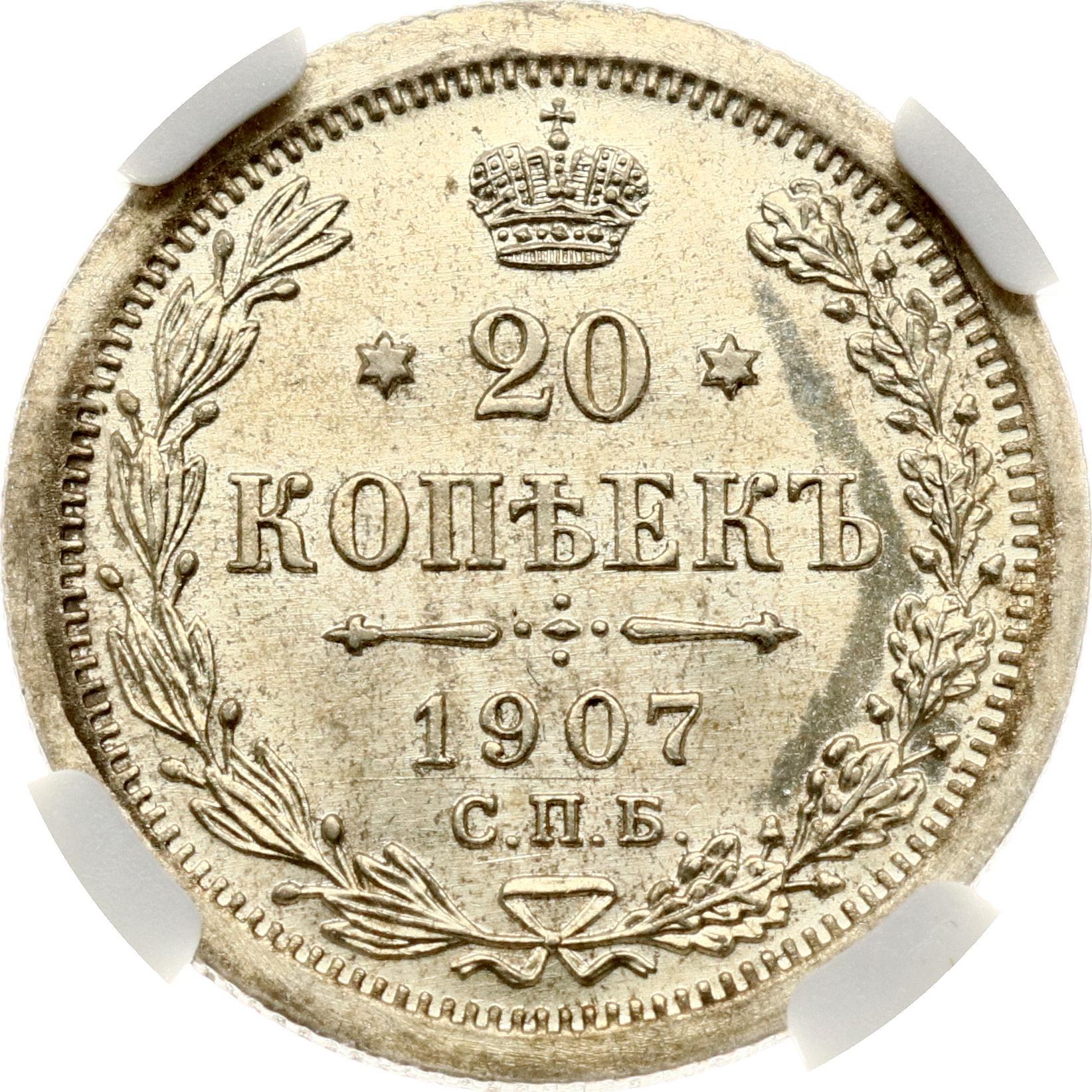 Russia 20 Kopecks 1907 СПБ-ЭБ NGC MS 65