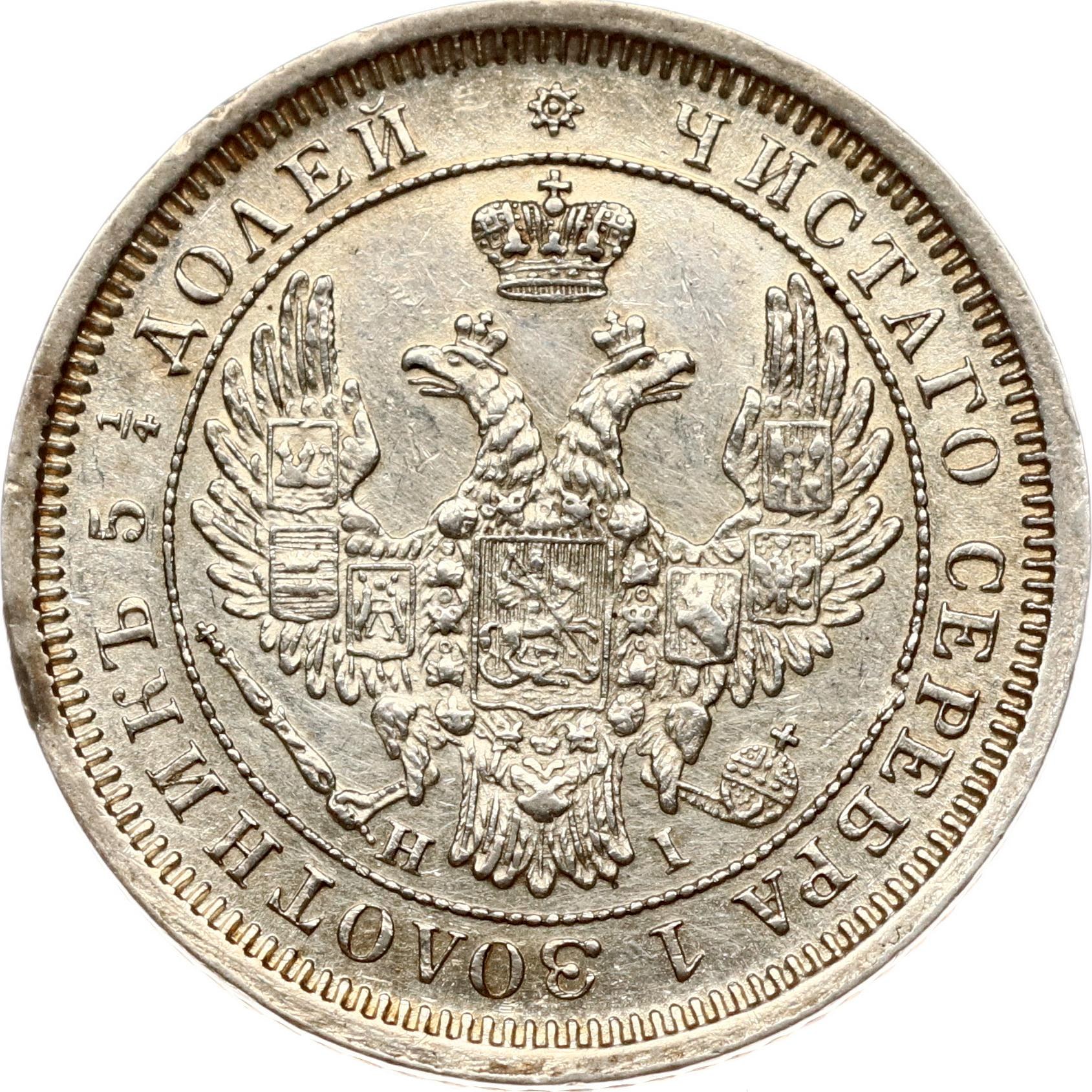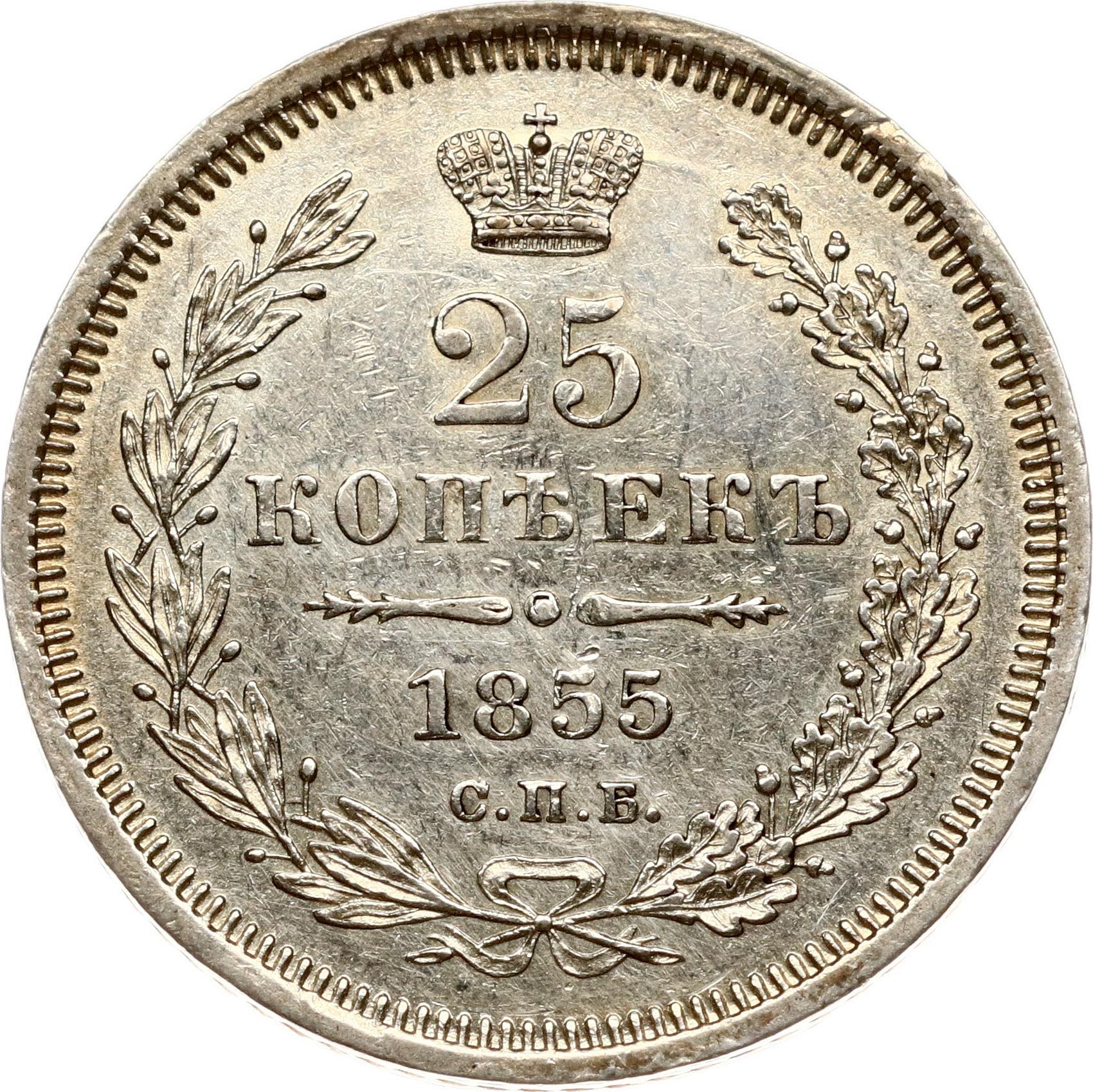 Russia. Nicholas I (1825-1855). 25 Kopecks 1855 СПБ-HI, St. Petersburg. Silver 5.14 g. Bitkin 311.