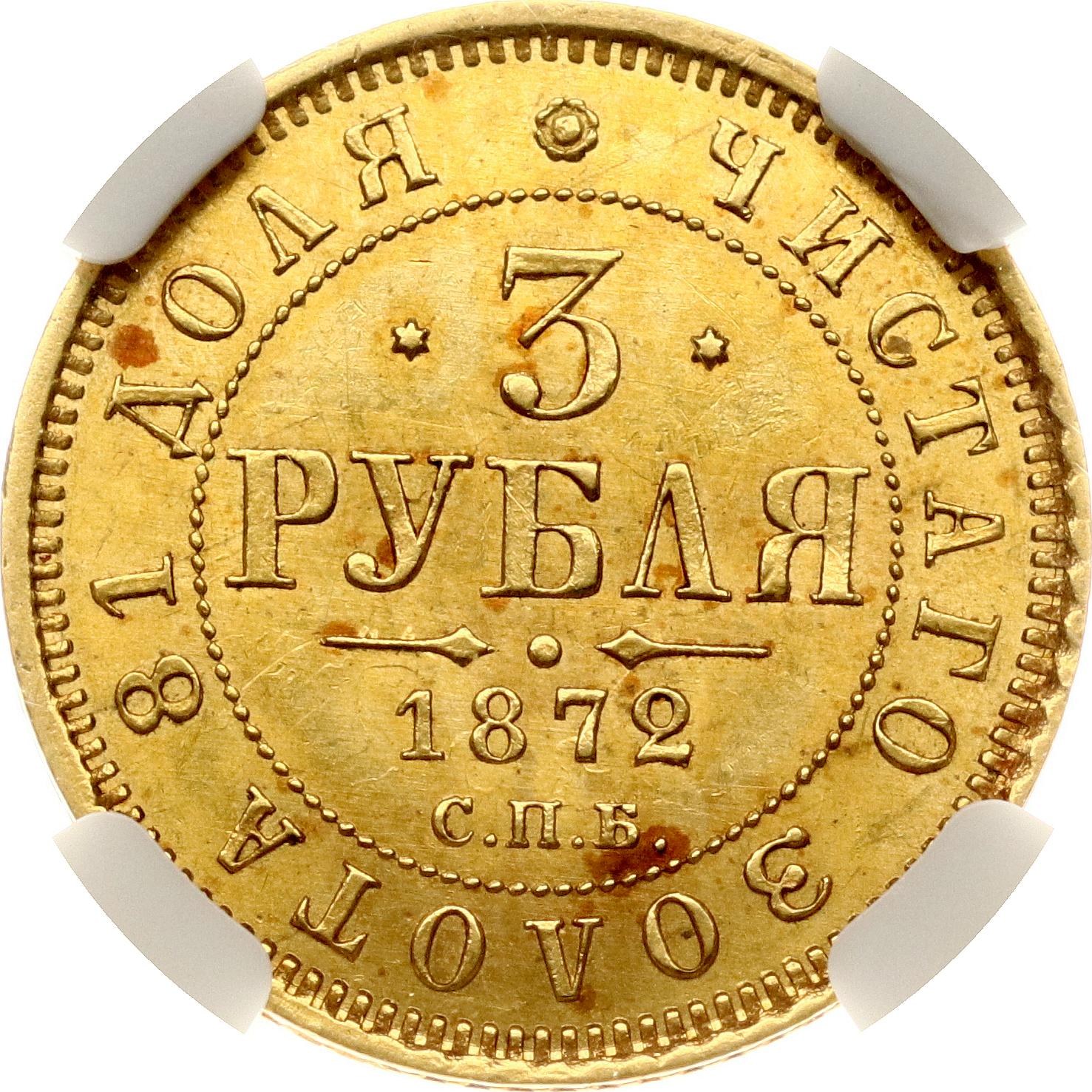 Russia 3 Roubles 1872 СПБ-НІ (R) NGC MS 62