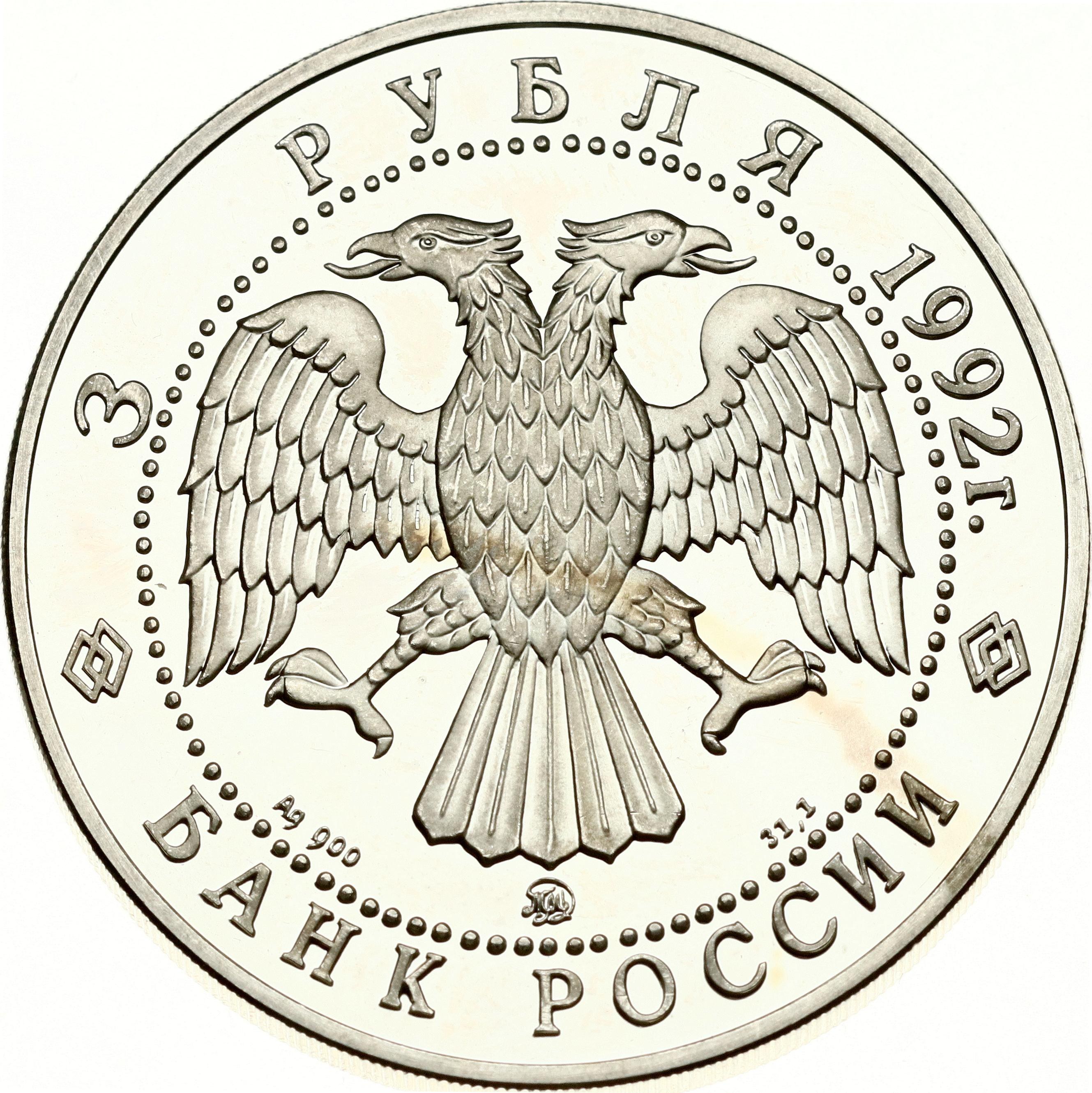 Russia. 3 Roubles 1992 MМД, The Academy of Sciences. Silver .900, 34.74 g. Mintage 40 000 pcs. Y 350.
