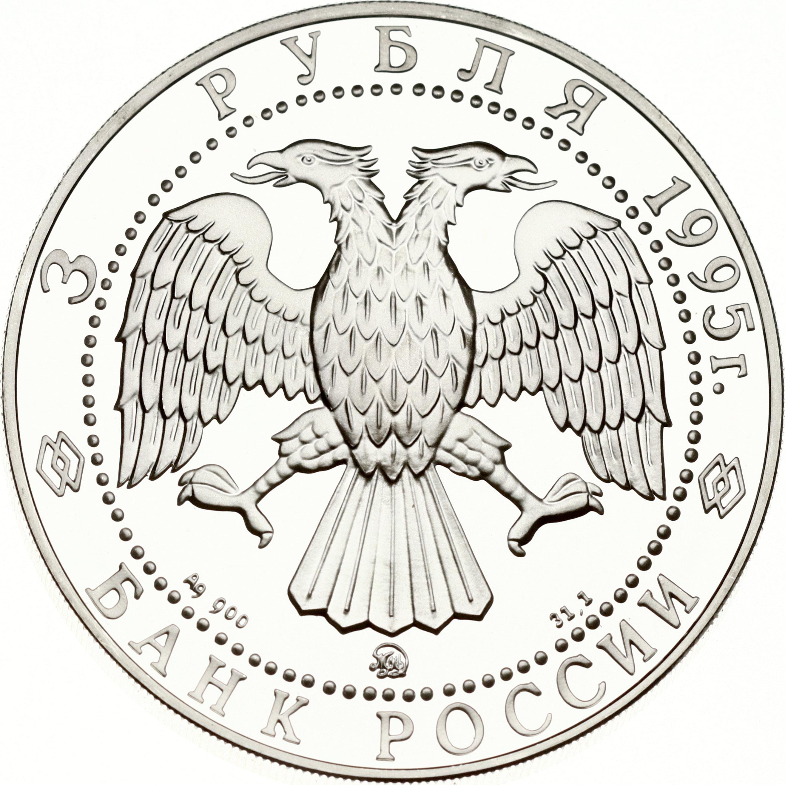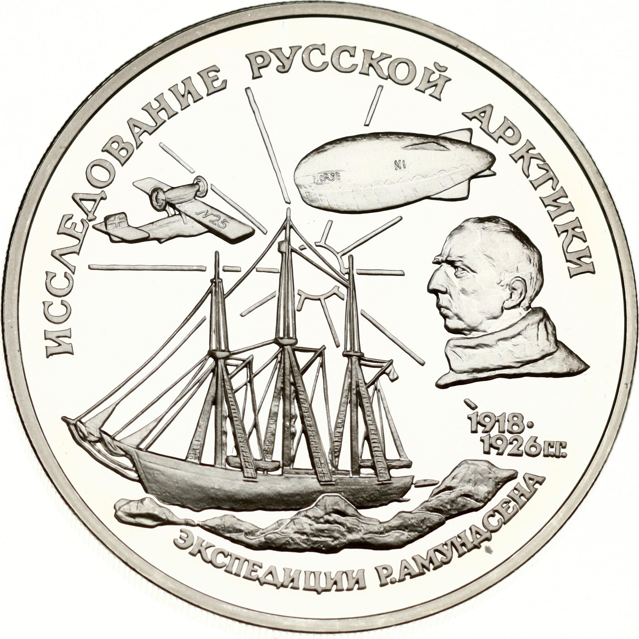 Russia. 3 Roubles 1995 MМД, R. Amundsen. Exploration of the Russian Arctic. Mintage 25 000 pcs. Silver .900, 34.69 g. Y 462.
