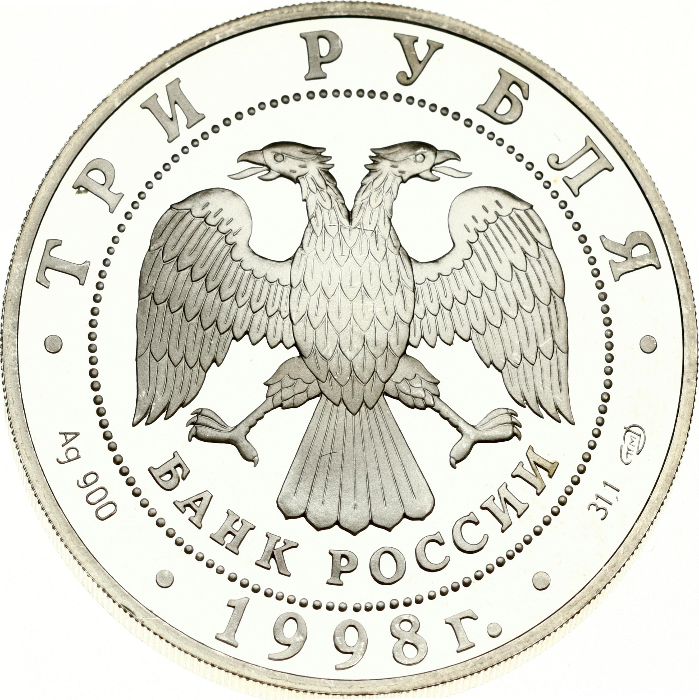 Russia. 3 Roubles 1998 СПМД, Archangel. 100 th Anniversary of the Russian Museum. Mintage 15 000 pcs. Silver .900, 34.65 g. Y 626.