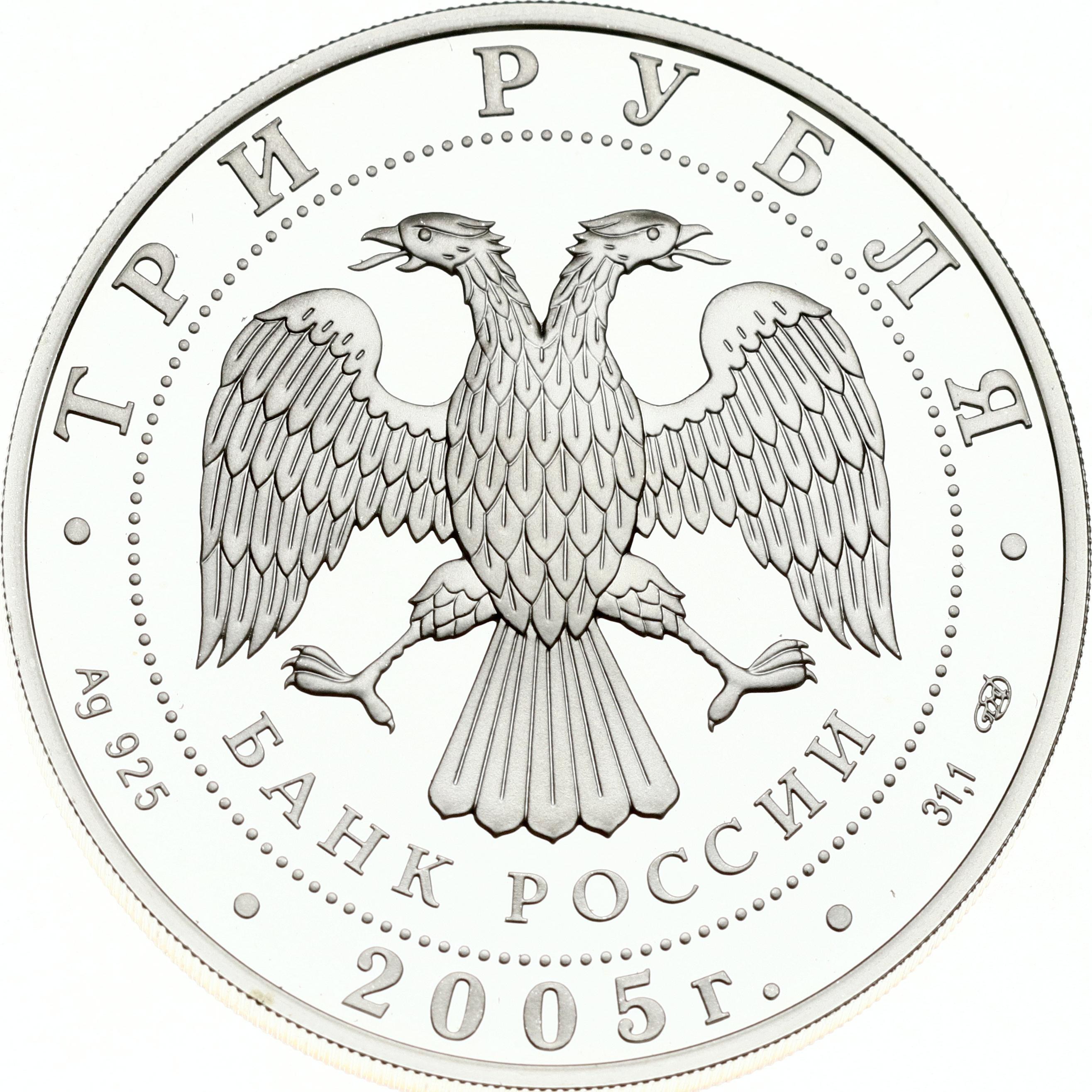 Russia. 3 Roubles 2005 СПМД, A theatre’s building. The Millennium of Founding the City of Kazan. Mintage 10 000 pcs. Silver .925, 33.92 g. Y 910.