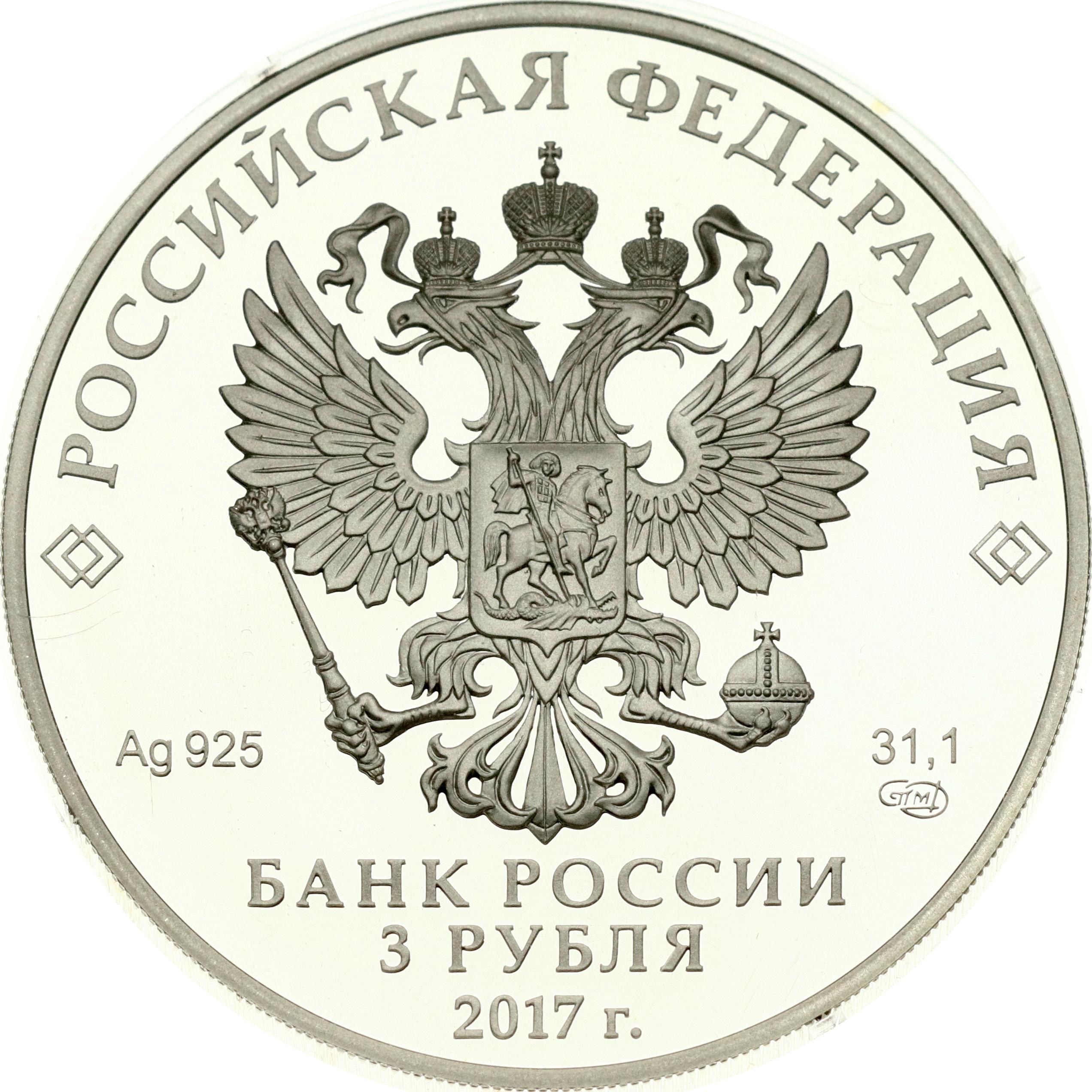 Russia. 3 Roubles 2017 СПМД, Queen Louise Bridge. Silver (.925), 34 g. Mintage 3 000 pcs. Y 1762.