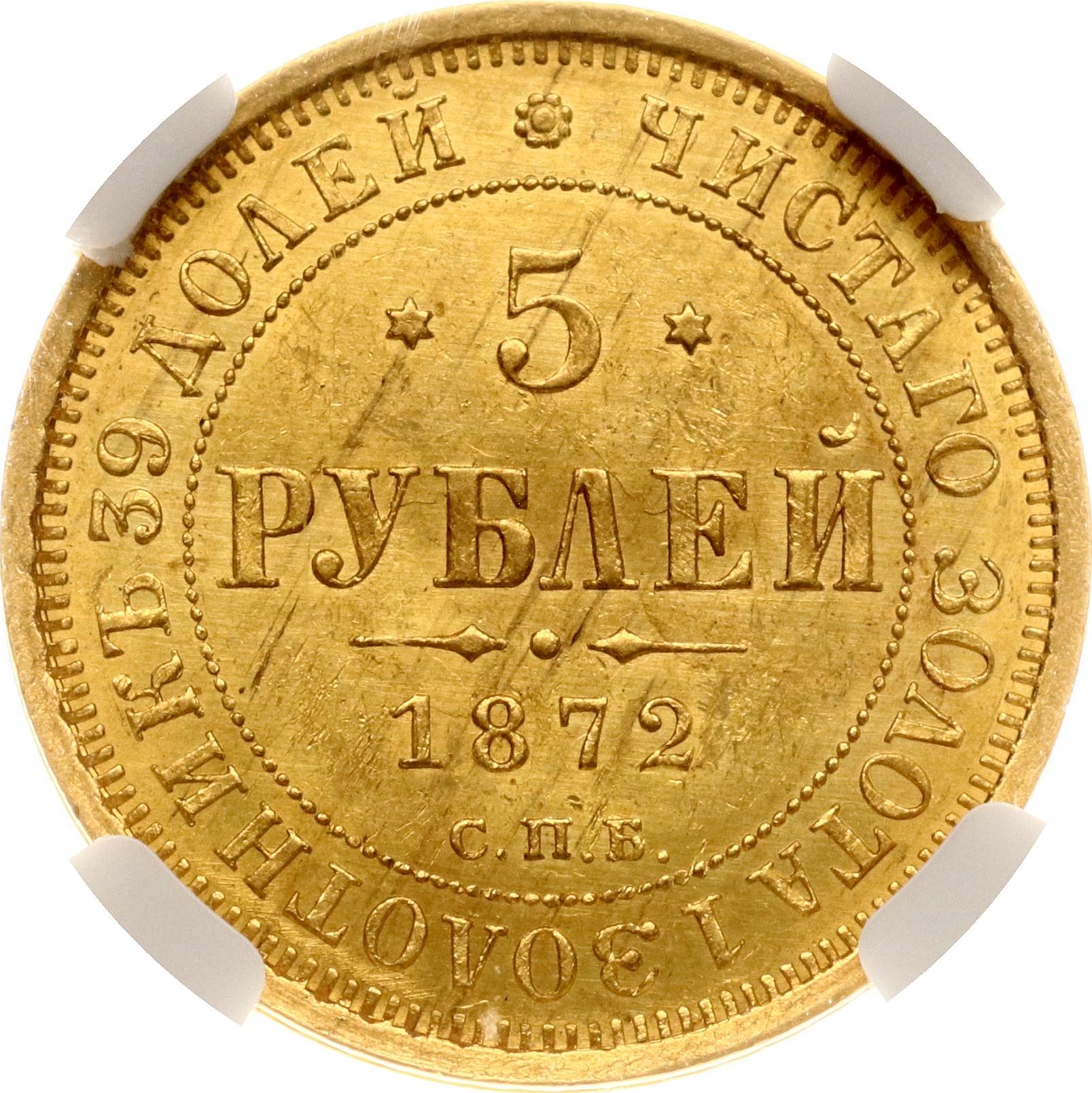 Russia 5 Roubles 1872 СПБ-НІ NGC MS 62