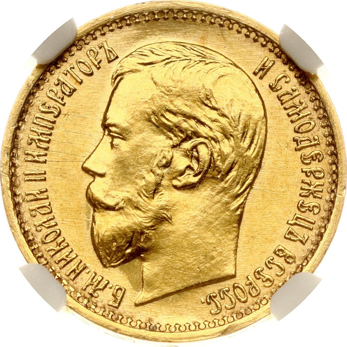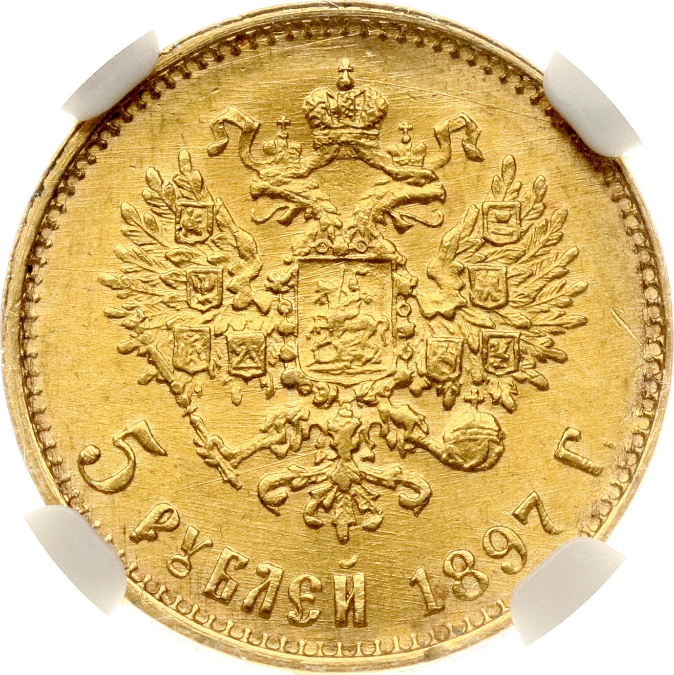Russia. Nicholas II (1894-1917). 5 Roubles 1897 АГ, St. Petersburg. Gold. Bitkin 18. NGC MS 64.