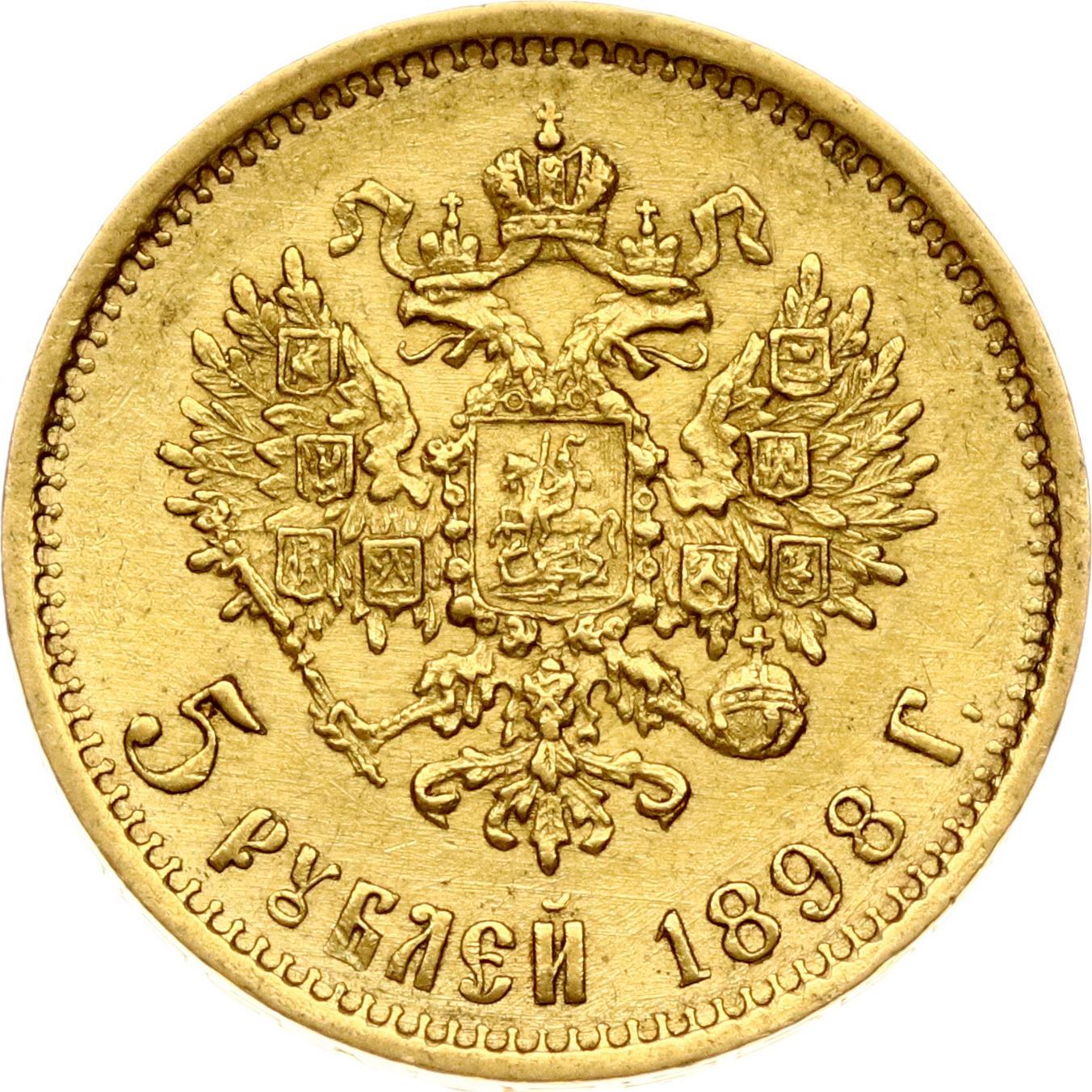 Russia. Nicholas II (1894-1917). 5 Roubles 1898 АГ, St. Petersburg. Gold 4.28 g. Bitkin 20.