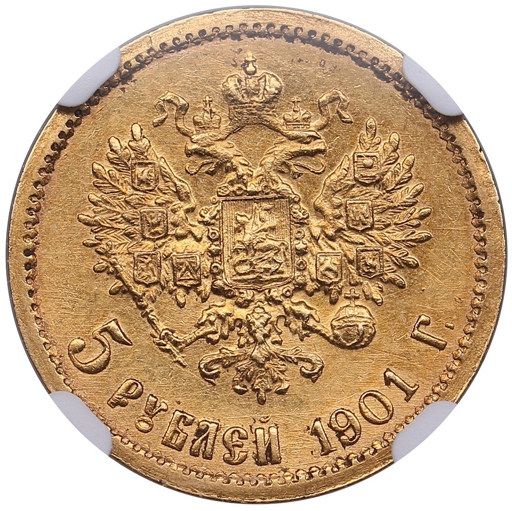 Russia 5 Roubles 1901 ФЗ - Nicholas II (1894-1917) - NGC AU 58