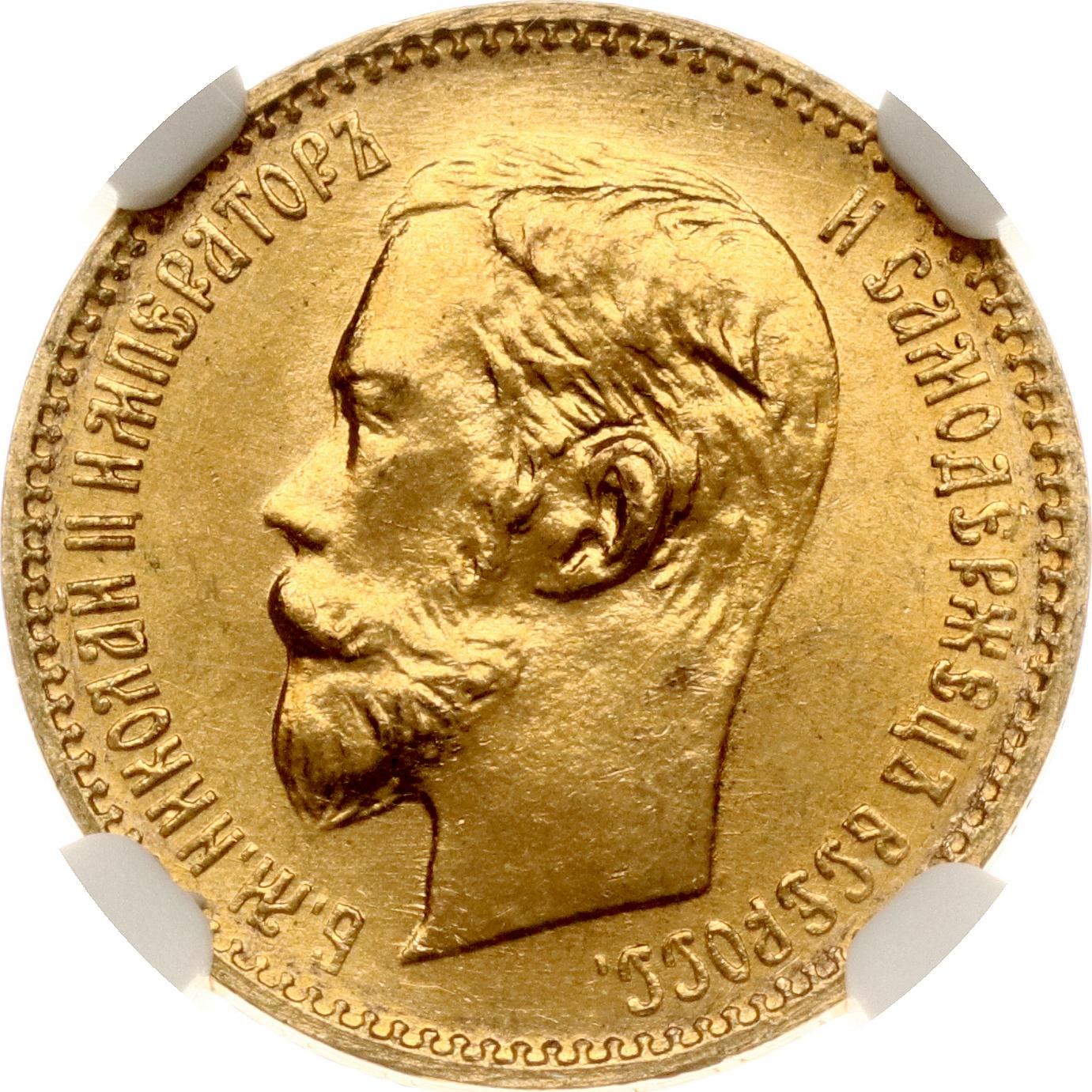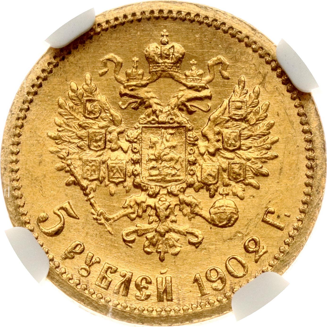 Russia. Nicholas II (1894-1917). 5 Roubles 1902 AP, St. Petersburg. Gold. Bitkin 29. NGC MS 67.