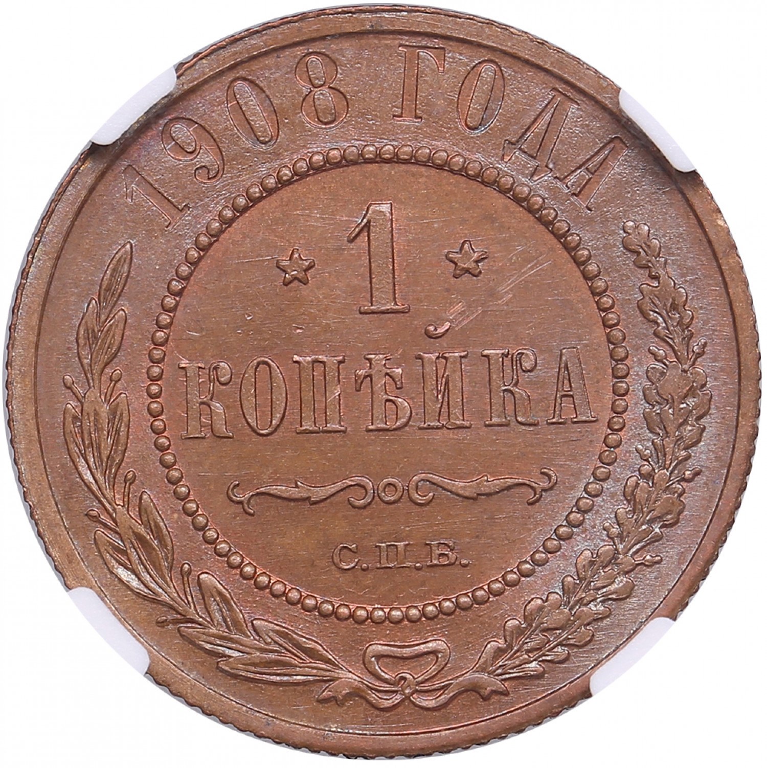 Russia 1 Kopeck 1908 СПБ - NGC MS 65 BN