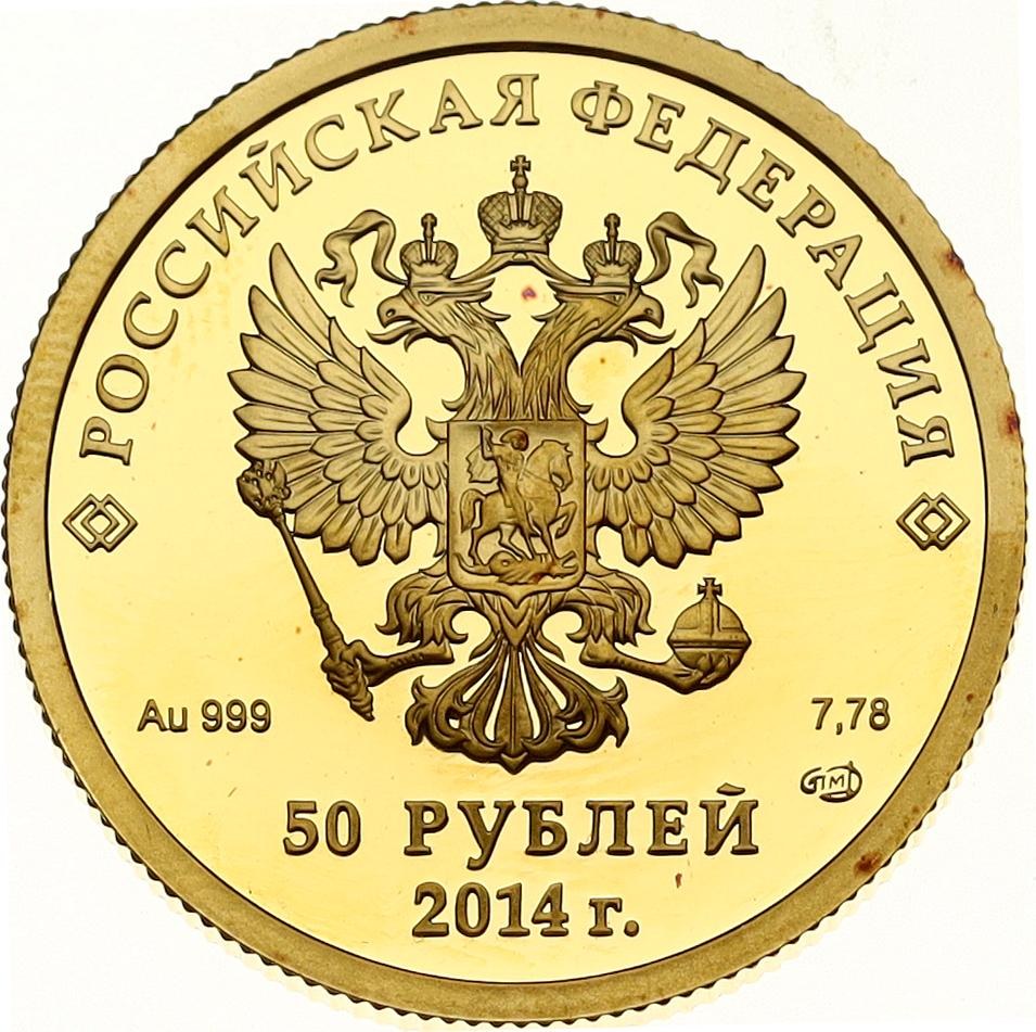 Russia. 50 Roubles 2014 СПМД, Ice hockey. Sochi XXII Olympic Winter Games and XI Paralympic Winter Games of 2014. Gold .999, 7.90 g. Y 1487.