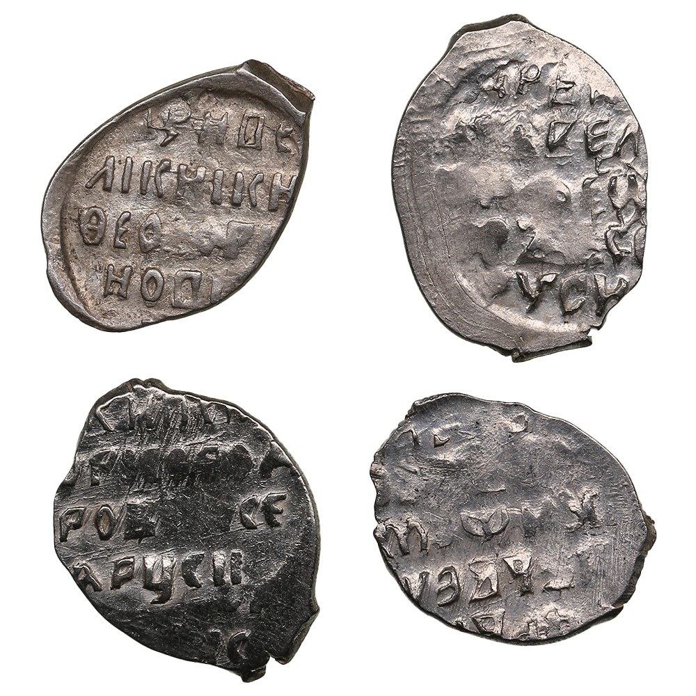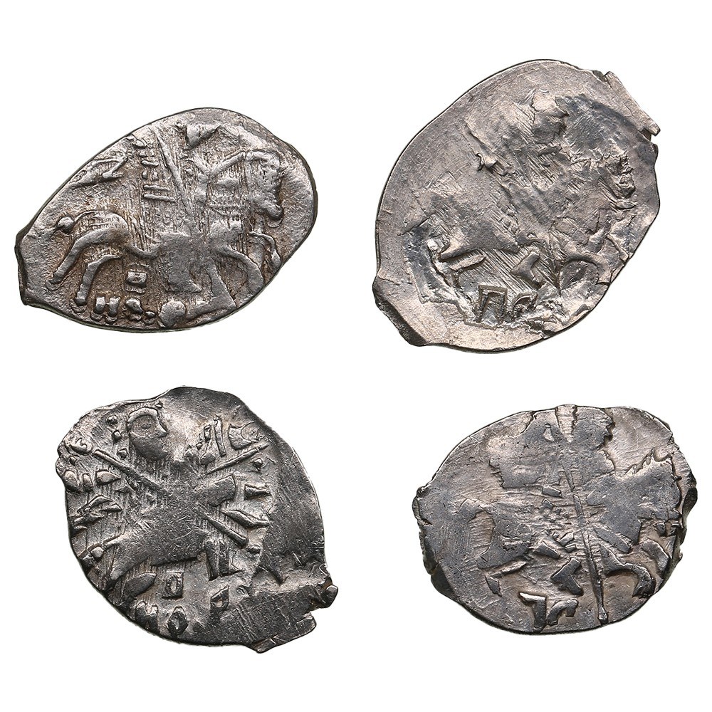 Various condition. Fyodor Ivanovich (1584-1598): Kopeck (Novgorod) 1596 В/НО.РД. KG 114; GKH2 113. Kopeck (Pskov) 1596-97 ПС. KG 137; GKH2 147 (2). Boris Fyodorovich (1598-1605): Kopeck (Novgorod) 1598 В/НО.РЗ. KG 206; GKH2 210.
