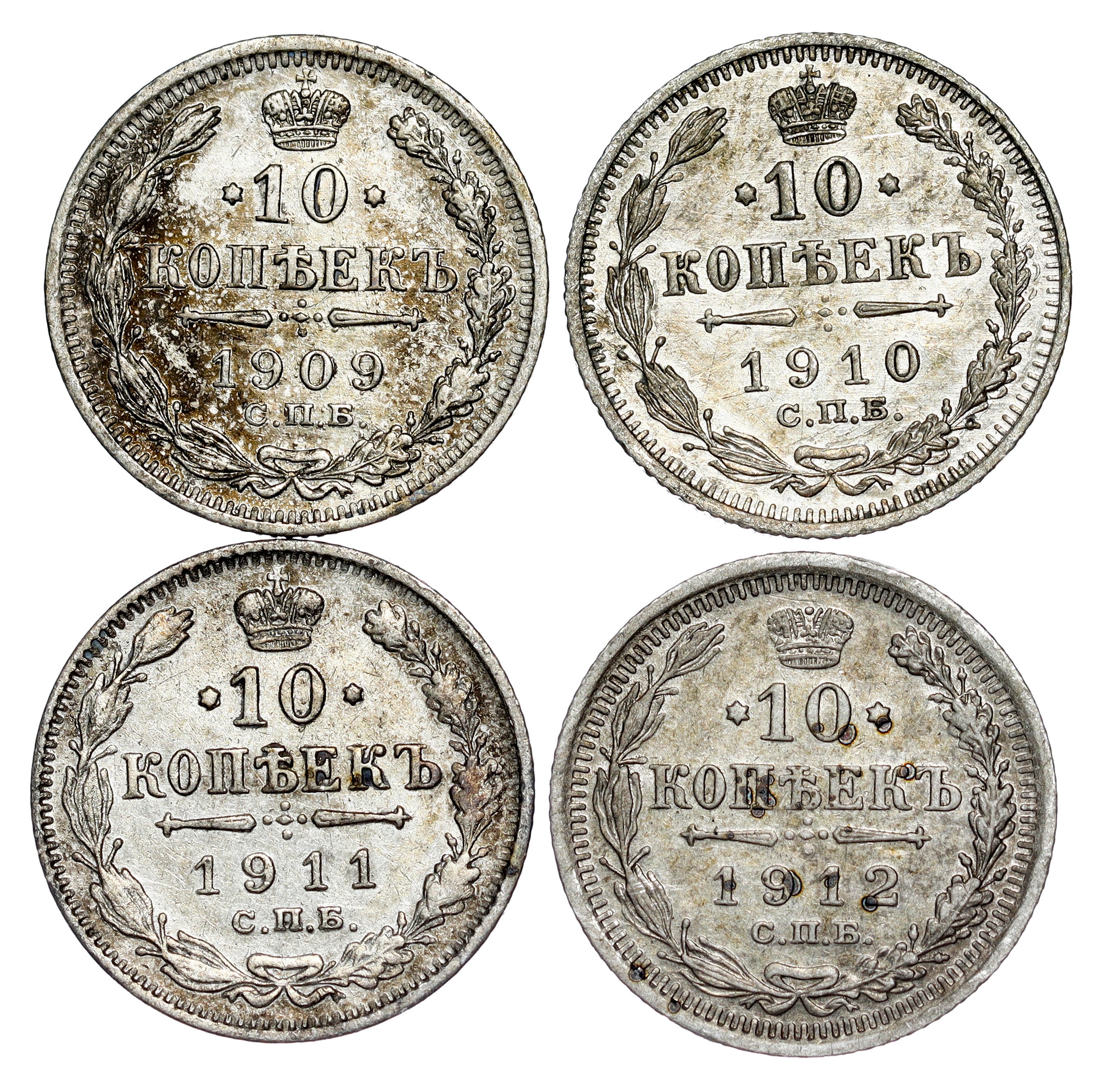 Russland - Nikolaus II., 1894-1917. 10 Kopeken LOT - 4 pcs