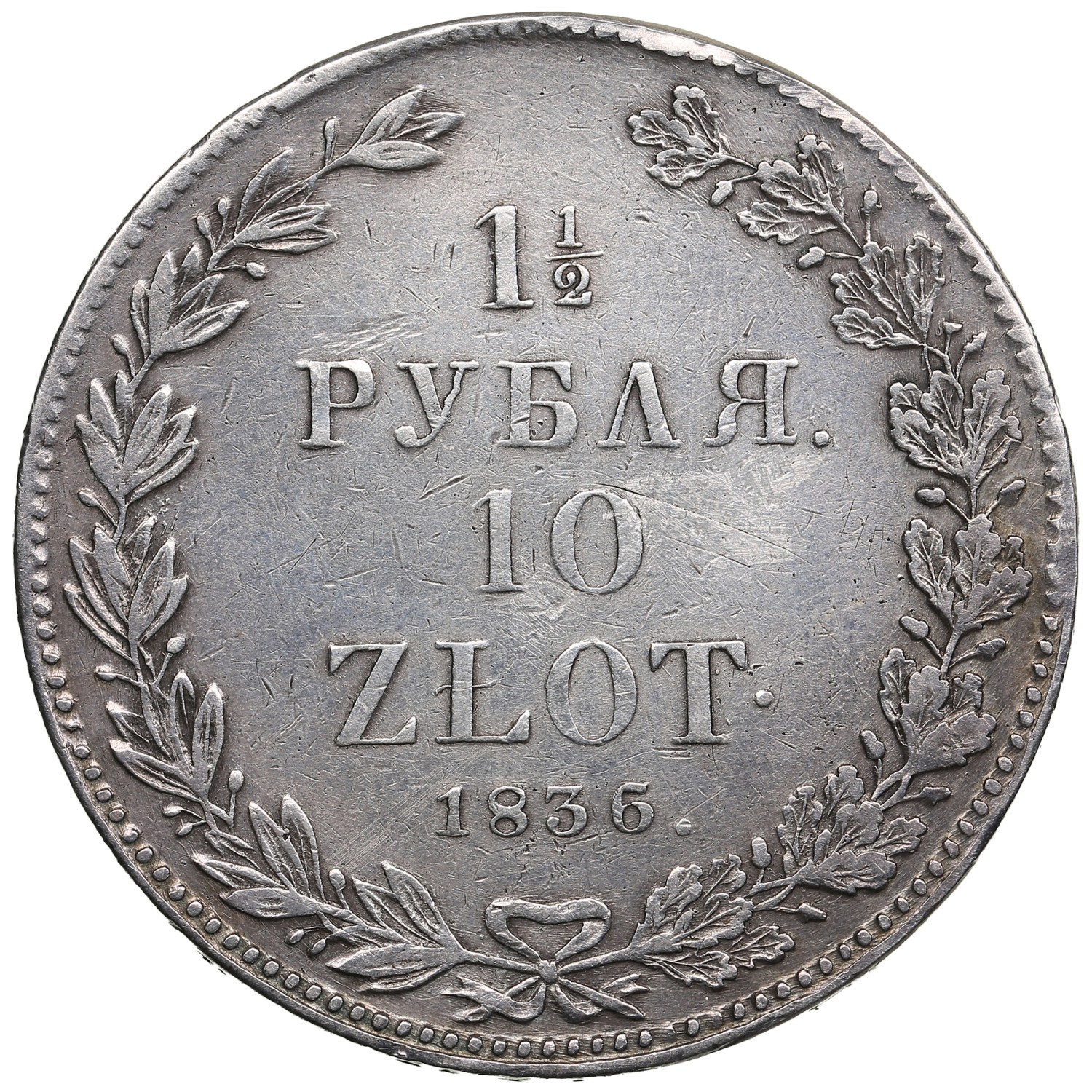 Russia (Poland) 1 1⁄2 Rouble / 10 Zlotych 1836 СПБ-НГ - Nicholas I (1825-1855)