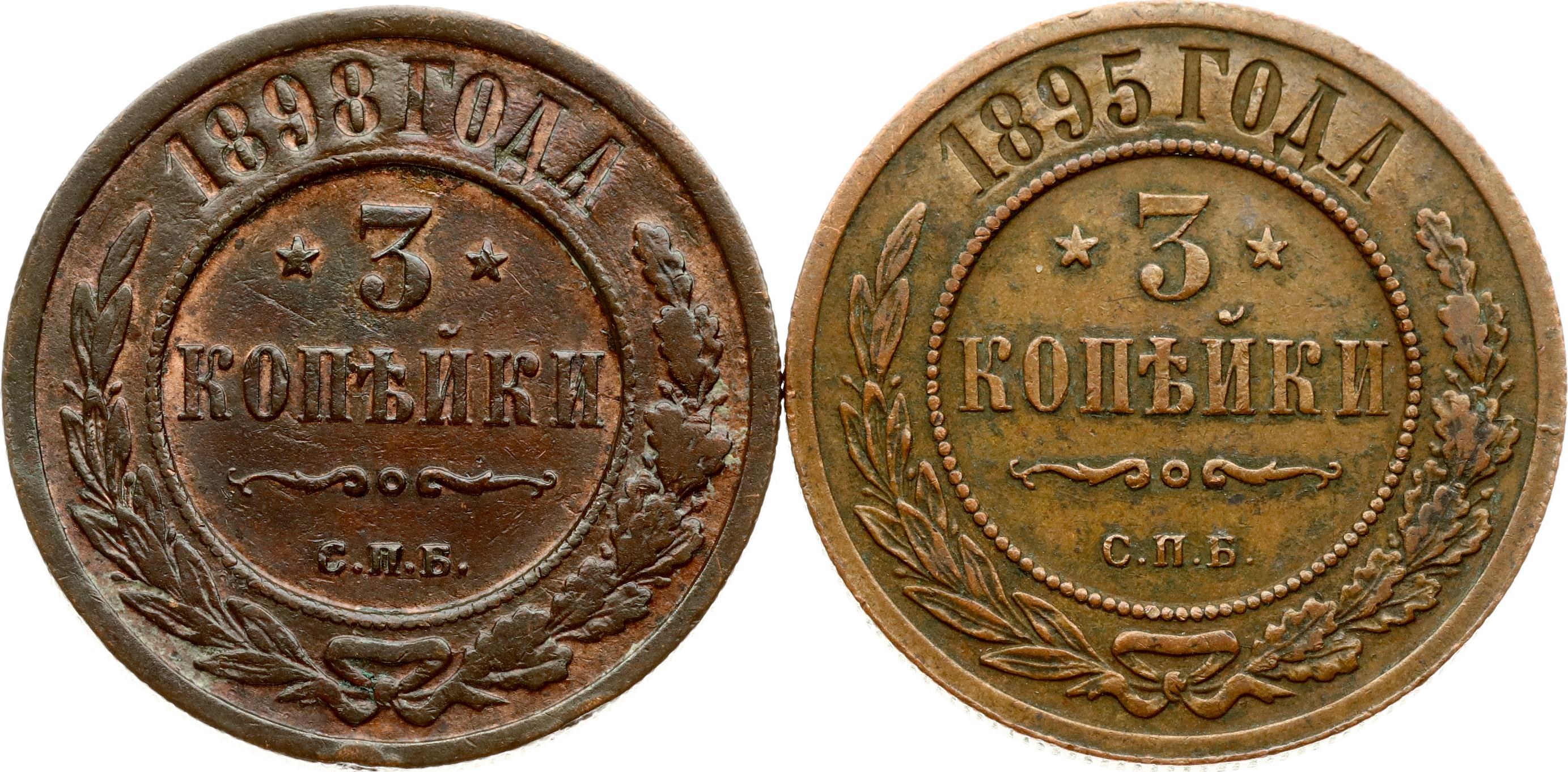 Russia 3 Kopecks 1895 СПБ & 1898 СПБ Lot of 2 coins