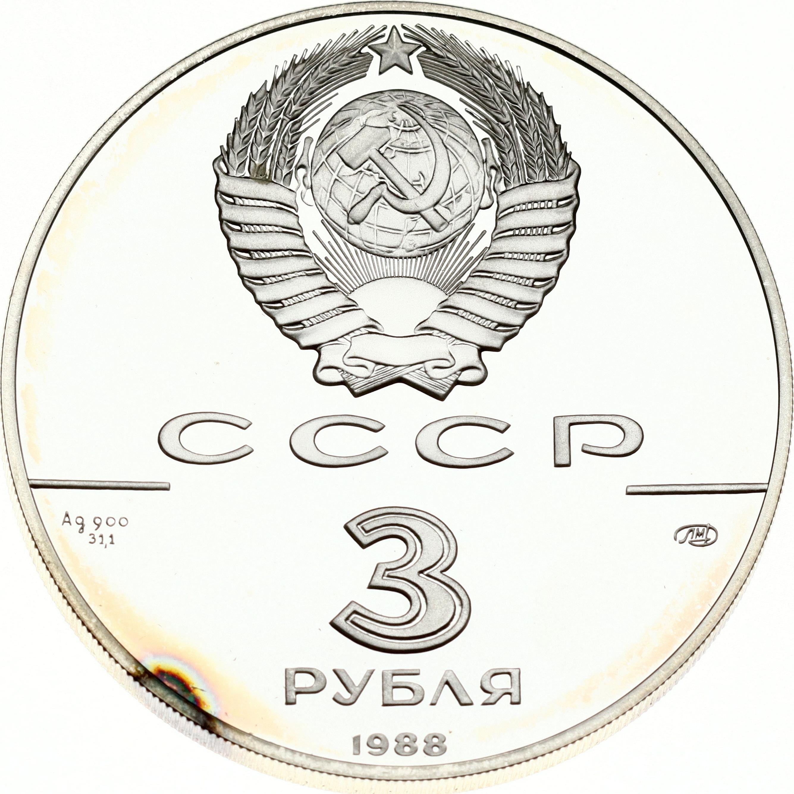 Russia USSR 3 Roubles 1988 ЛМД Vladimir's Silver Coin
