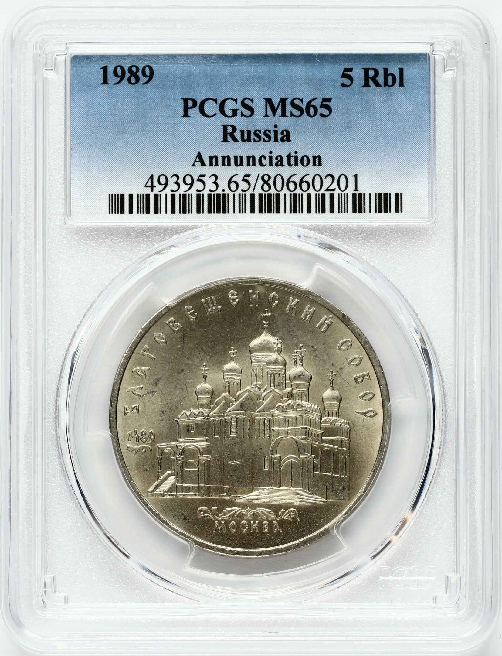 Russia USSR 5 Roubles 1989 Cathedral of the Annunciation. Obverse: National arms with CCCP and value below. Reverse: Cathedral of the Annunciation in Moscow. Copper-Nickel. Y 230. PCGS MS 65