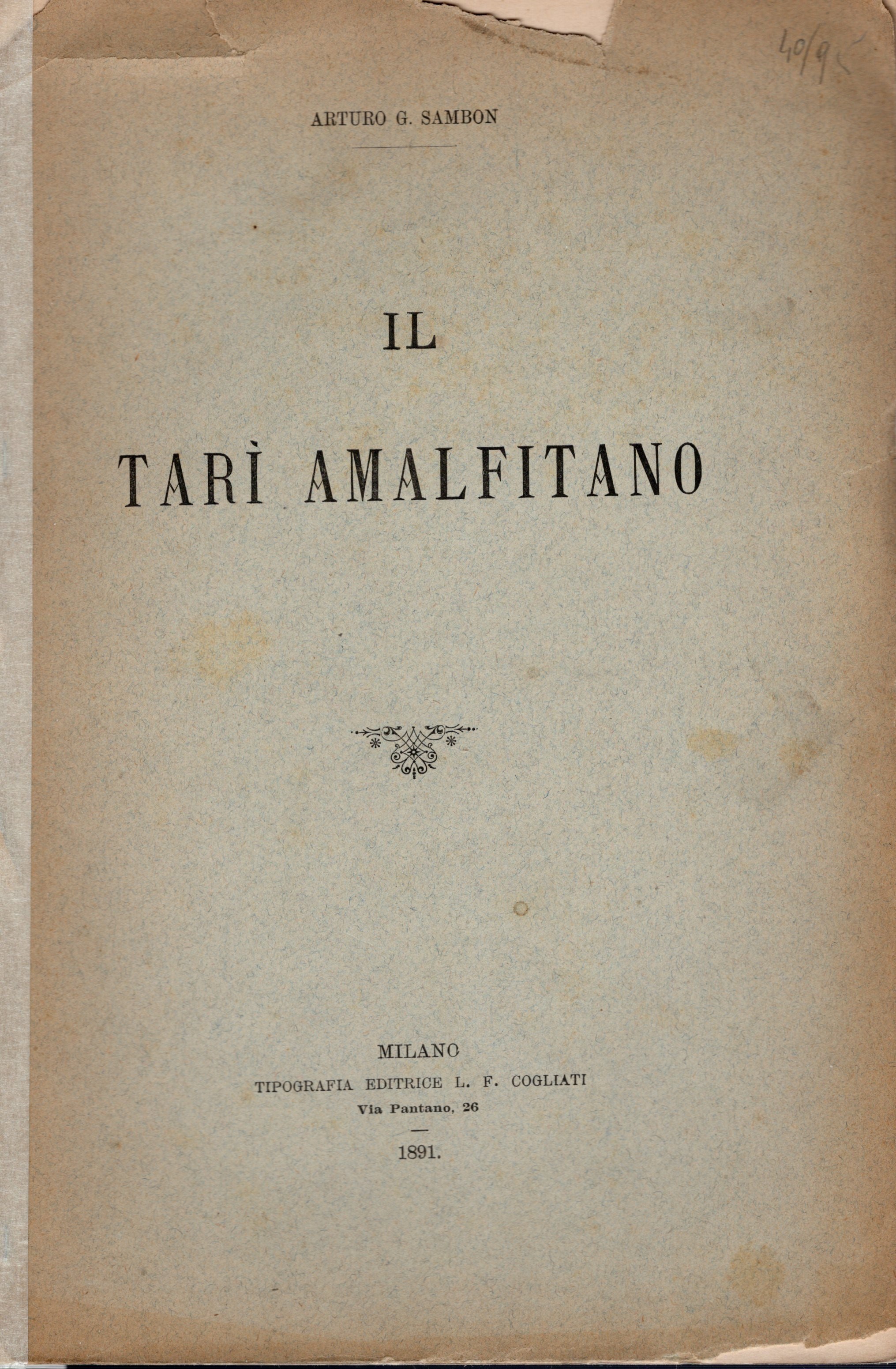 SAMBON A. G. - Il Tarì amalfitano. Milano, 1891. pp. 16, ill. nel testo. ril ed sciupata interno buono stato, raro.