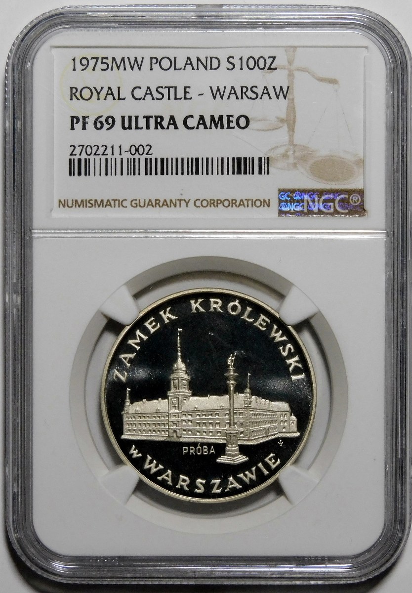 Próba 100 złotych Zamek w Warszawie 1975 - srebro