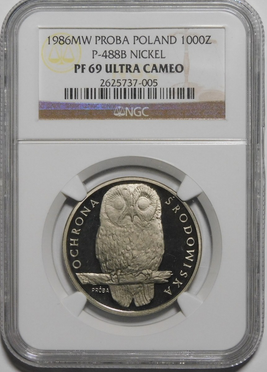 PRÓBA NIKIEL 1000 złotych 1986 Ochrona Środowiska - Sowa