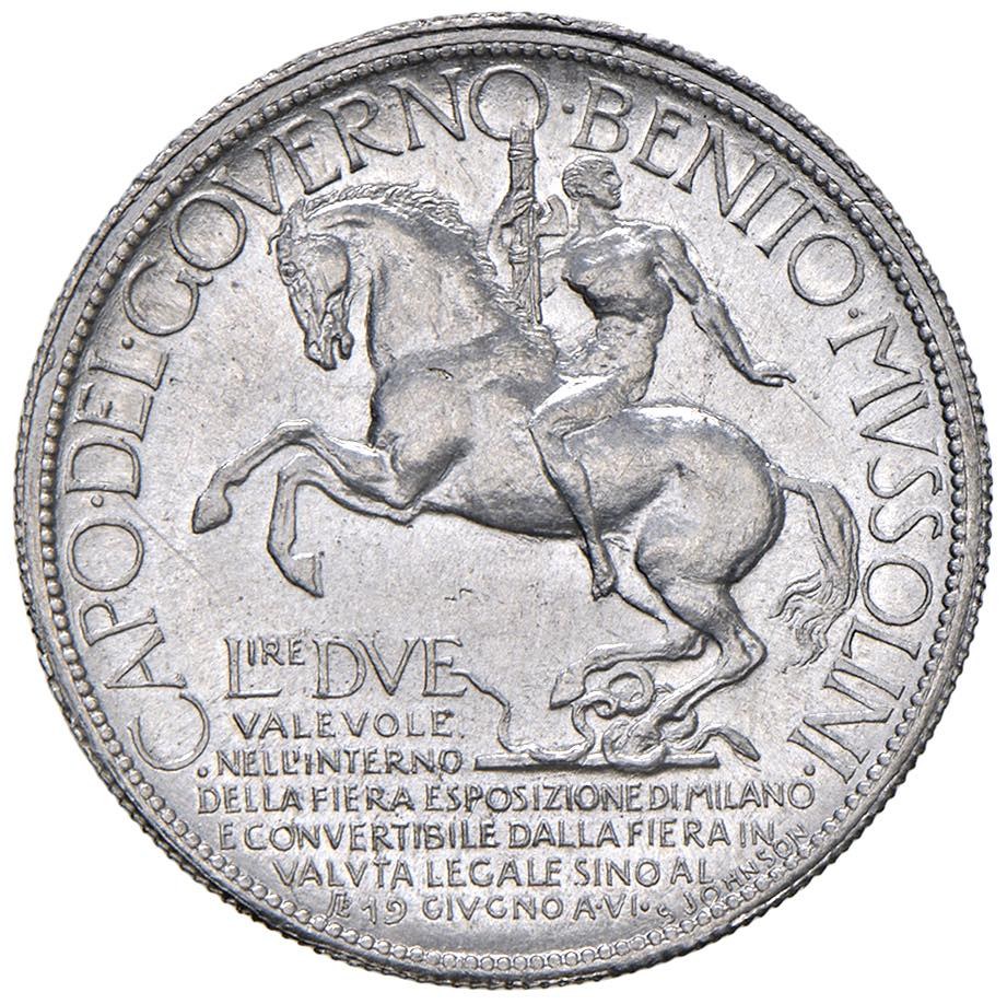 Vittorio Emanuele III (1900-1946) 2 Lire 1928 Fiera di Milano PROVA - Nomisma P70a AL (g 4,18) RR