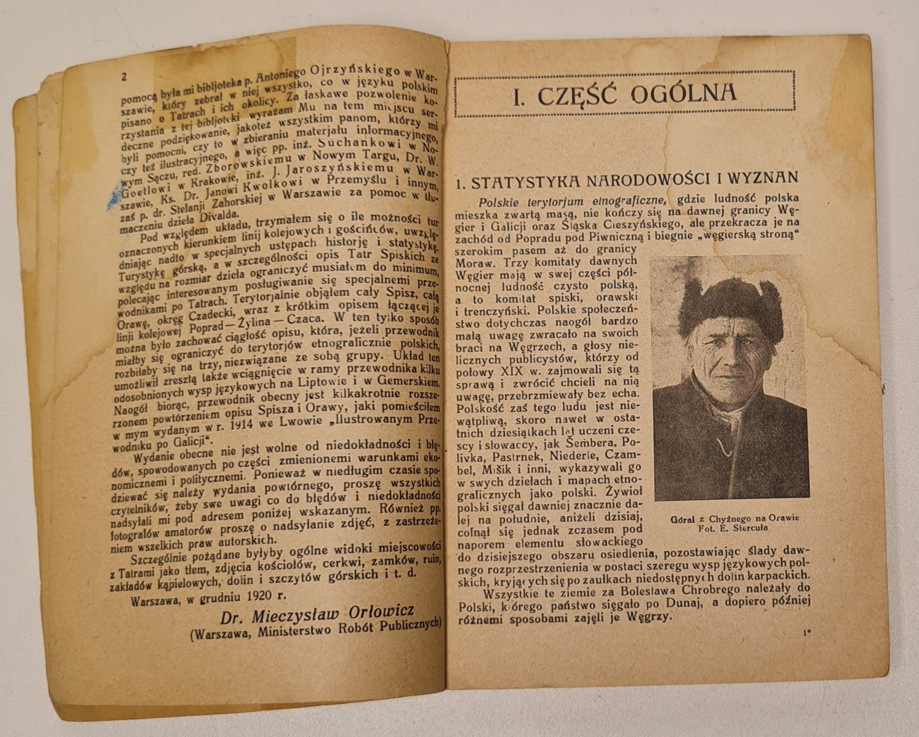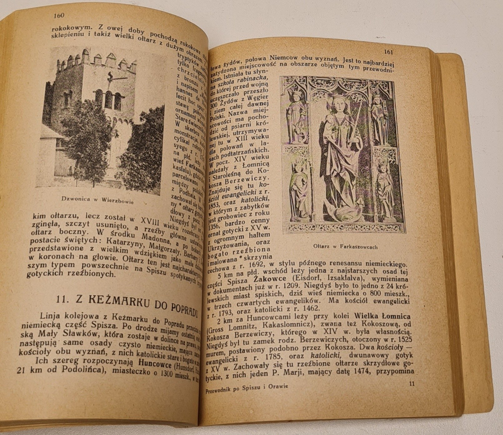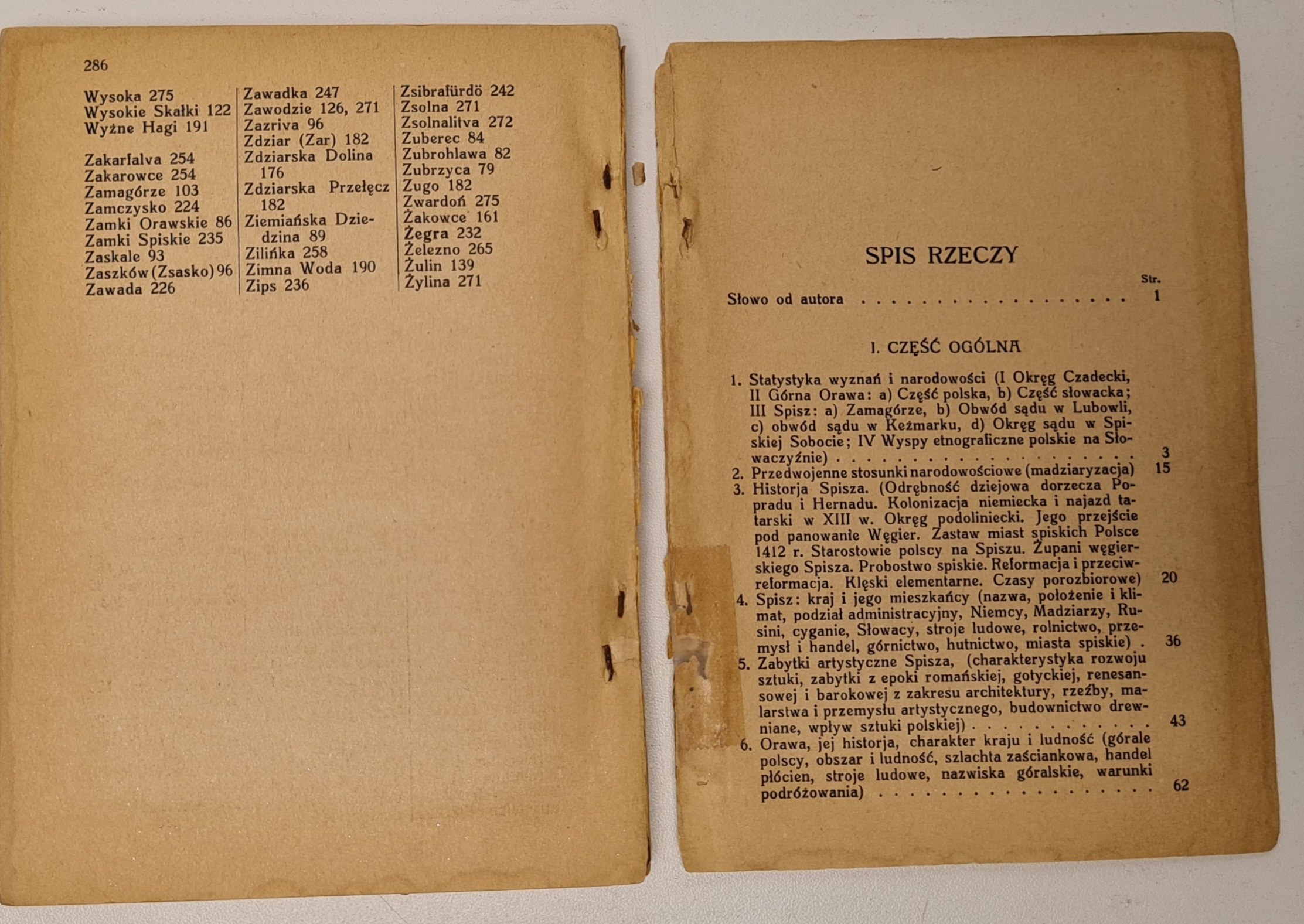 Orłowicz Mieczysław: Ilustrowany przewodnik po Spiszu, Orawie, Liptowie i Czadeckiem. Lwów-Warszawa 1921: Książnica Polska, 1921. Wym. 11,5x16cm, 288 s., il., [1] mapa rozkł., 16,5 cm, brosz. wyd. Na k. tyt. pryw. pieczątka własnościowa. Polska Bibljoteka Turystyczna. Na końcu indeks alfabetyczny nazw miejscowości. Pierwsze karty ze śladem po zacieku i z niewielkim ubytkiem marginesu. Okładka lekko zabrudzona z zagięciami na krawędziach, tylna okładka osobno od bloku.
