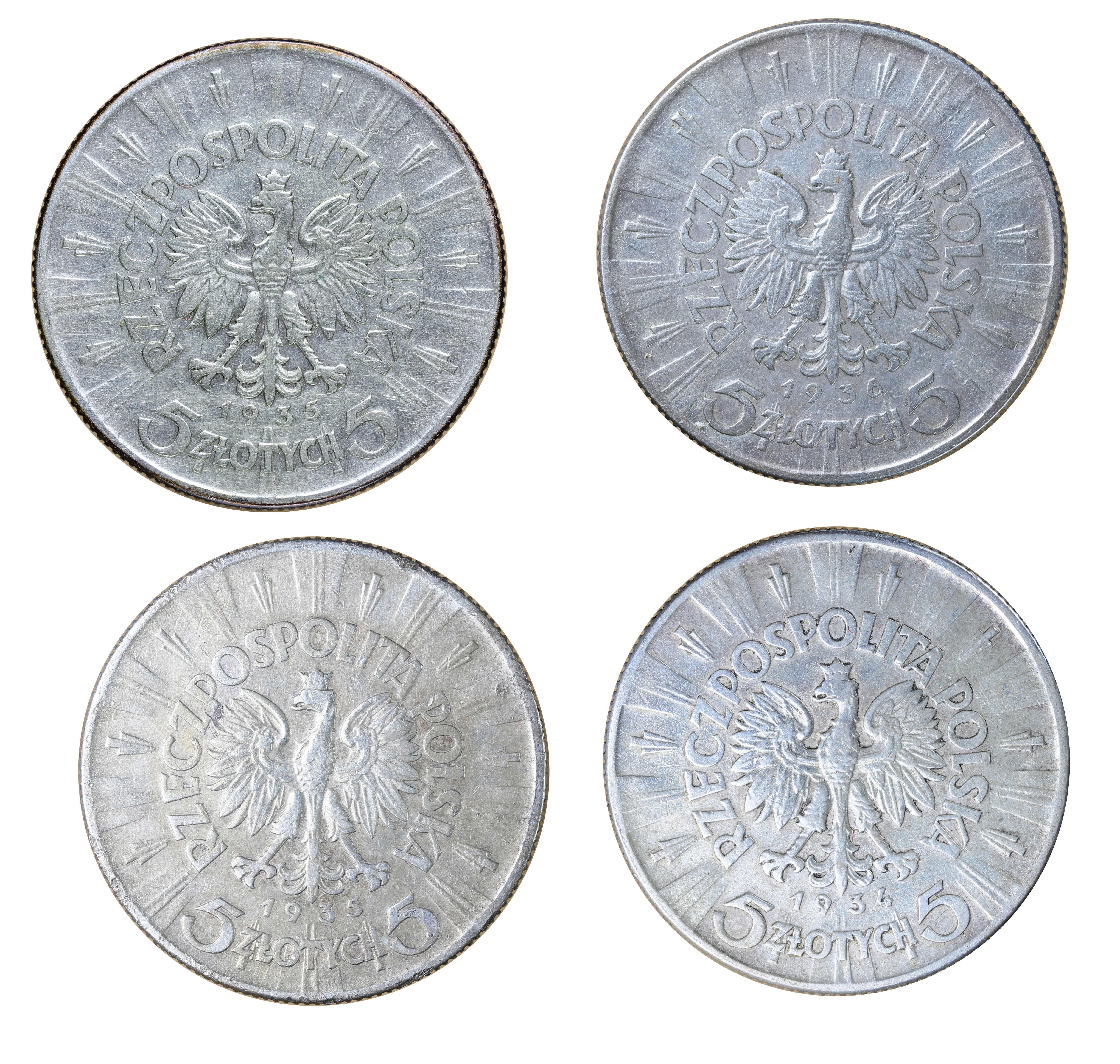 Zestaw 4 szt. 5 złotych, Piłsudski, II Rzeczpospolita Polska 1923-1929