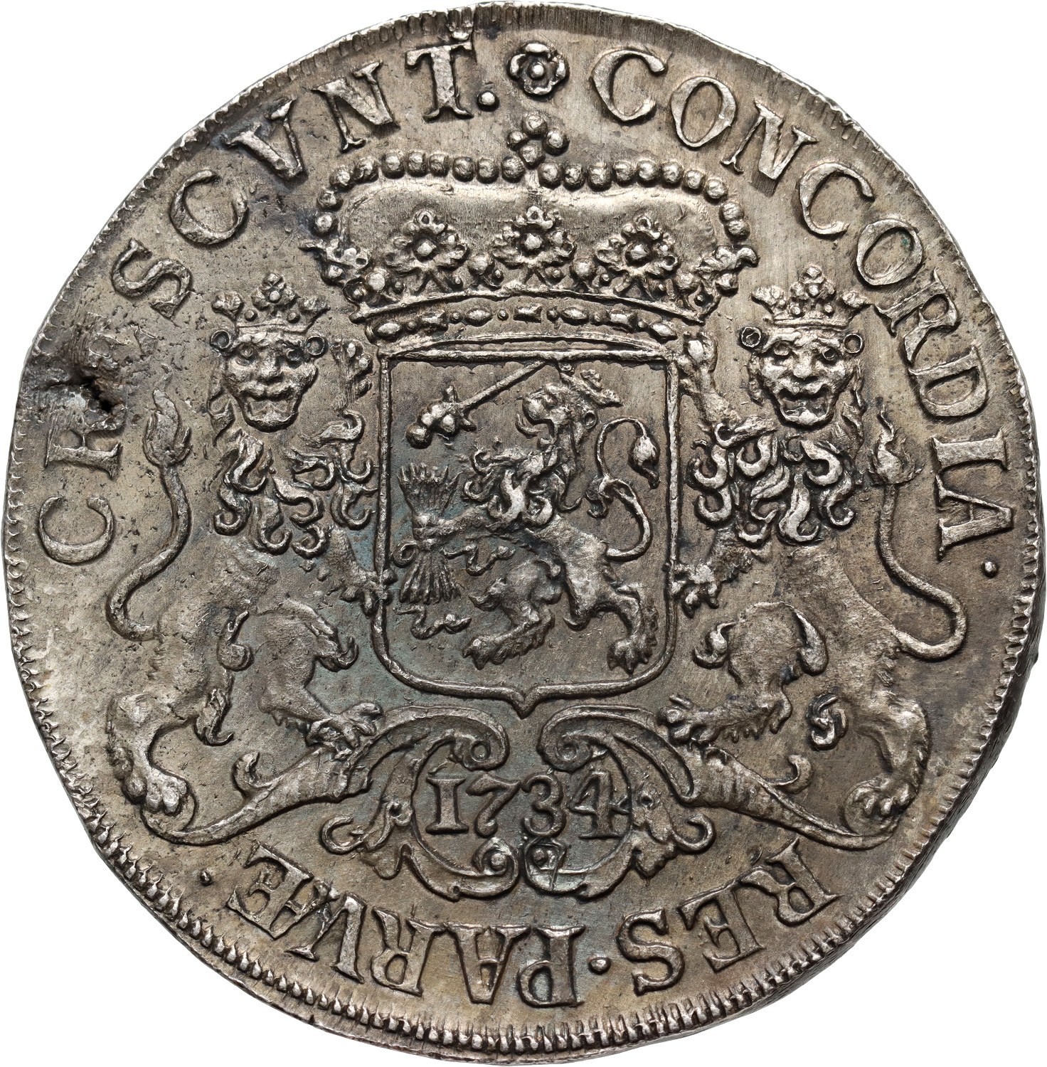 Silver 32,61 g. Old, dark toning. Planchet defect on the reverse.