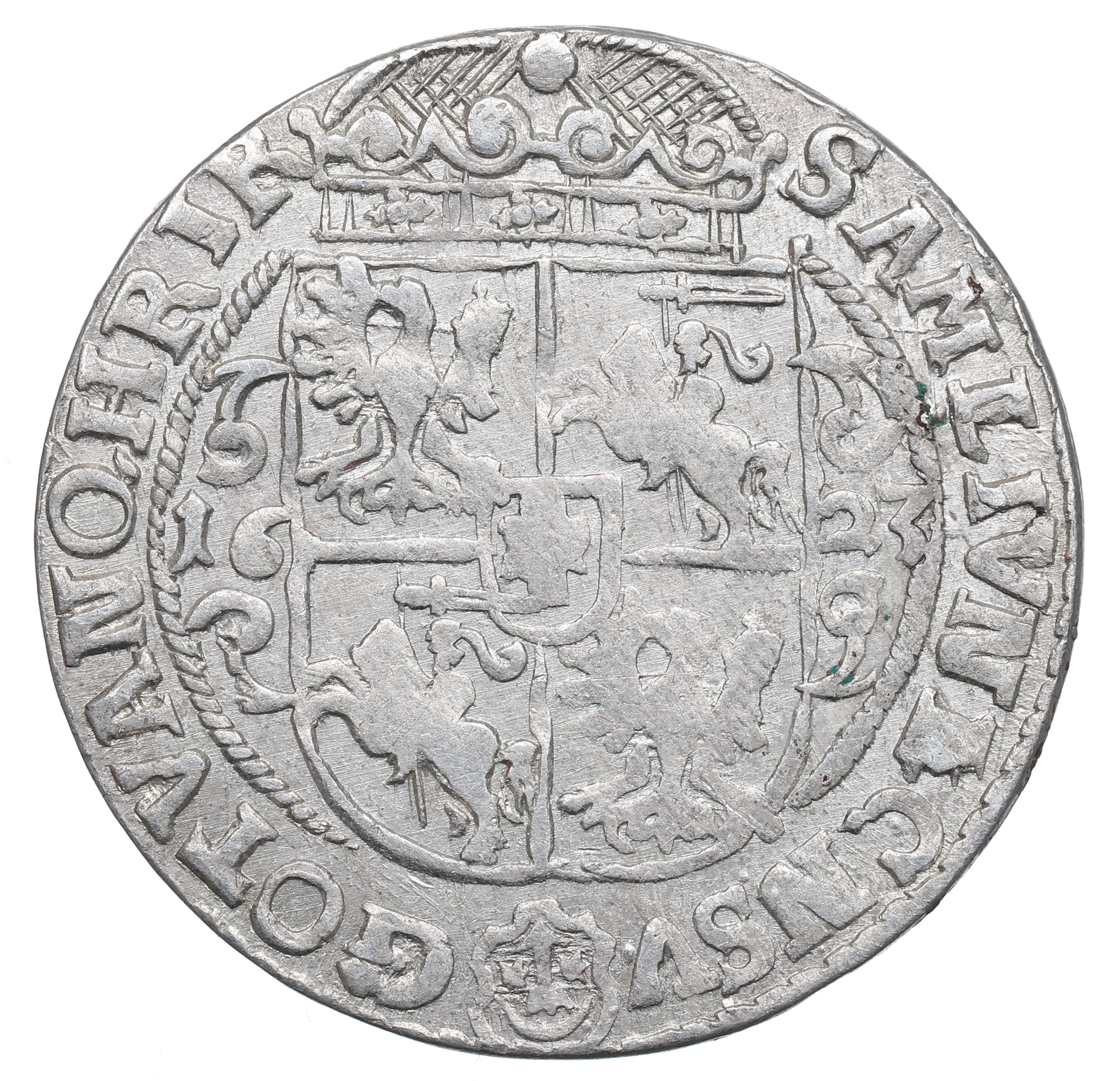 Ładny egzemplarz z resztkami połysku i dobrze zachowanymi detalami.